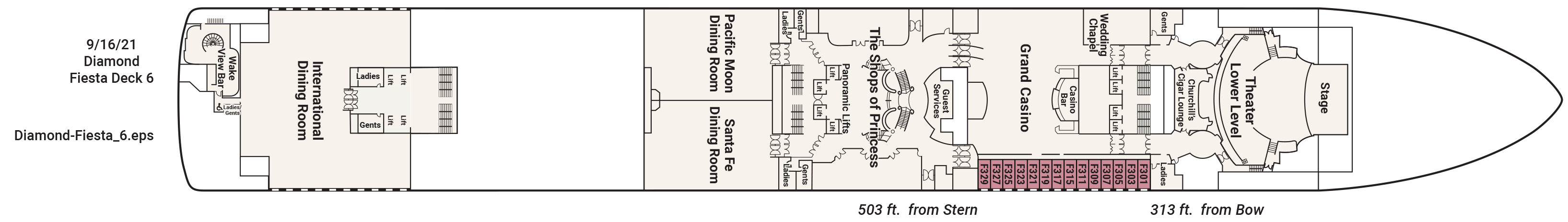 The Santa Fe Dining Room is on the 6th Deck of the Diamond Princess.