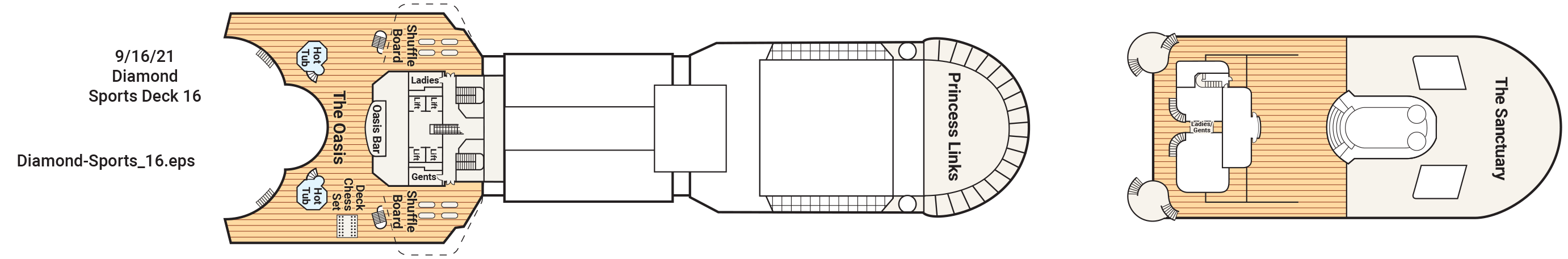 The Oasis Bar serves the Sports Deck (16) and is located aft of the deck in between the two hot tubs.