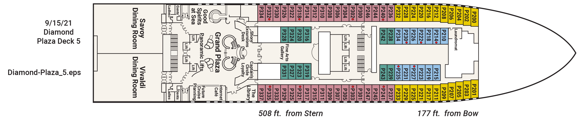 The Vivaldi Dining Room is on the 5th Deck of the Diamond Princess.