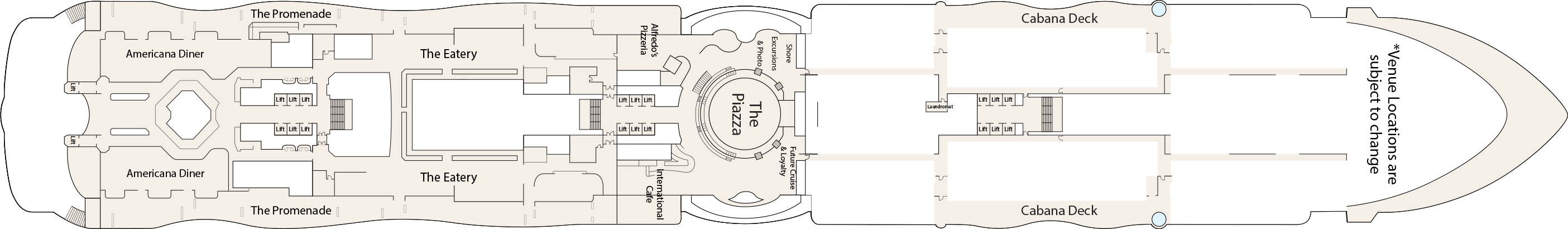Infused with light, our next generation Piazza connects you to the world with dynamic views and innovative experiences. Stroll through this — a hub of activity, inspired by the vibrant squares of Europe. Bring the world to you, and enjoy ocean views in every direction.
