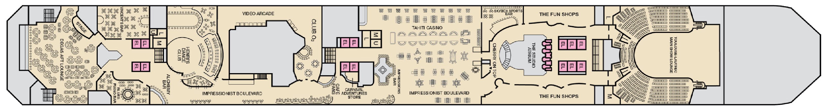 Here’s where you come in! The Atrium — the entrance to the ship and to vacation itself — is your first impression of all the fun to come. We make sure that this, the very heart of the ship, screams “welcome aboard the fun!” With multi-level panoramic views, the Atrium gives you the perfect place to enjoy all the hustle and bustle. There’s always music playing here, whether it’s a live band or a party-pumping DJ, plus enjoy events throughout the day or a drink at the bar, anytime. This 360-degree funspot is also home to the Guest Services desk, the place you go if you have questions for one of our certified fun experts… about just about anything that’s on your mind.