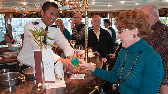 Dine on fine, freshly prepared cuisine with regional wines and beer included at lunch and dinner onboard, with attentive, friendly service - plus regional treats and tastings - as you enjoy great views of the passing scenery in our panoramic main dining room The Compass Rose.