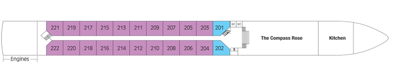 Accommodating no more than 98 quests, the newly redesigned ms Treasures sports a new deck plan optimised for the utmost in spaciousness and comfort.