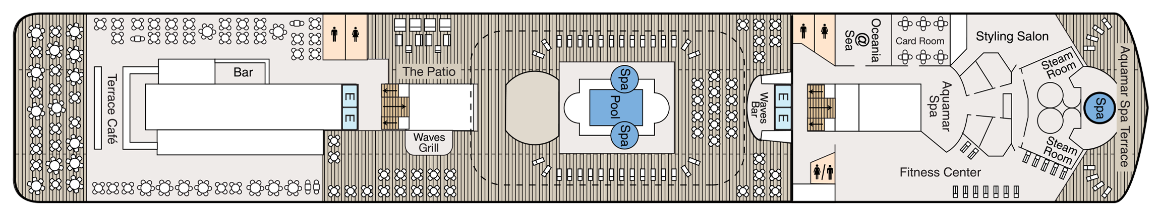 Sit back, relax and enjoy the stunning panoramic ocean views in the shaded, comfortable Patio as you sail to the next exciting destination.