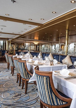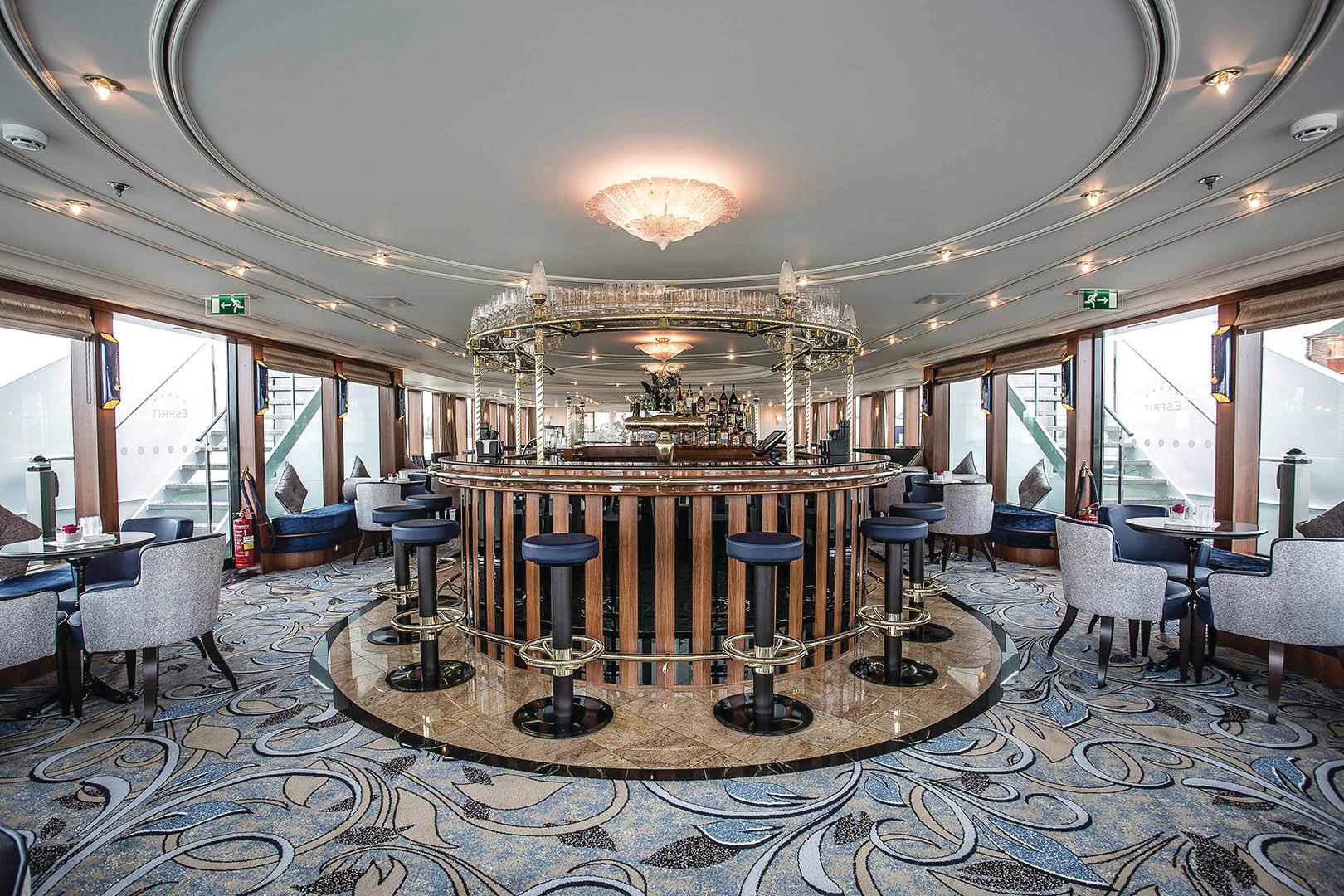 One of the 361-foot (110-meter) riverboats in Tauck's Destination Fleet, the newly redesigned ms Esprit debuted in 2018 with a new deck plan optimized for the utmost in spaciousness – with 70% of her cabins measuring 225 square feet or larger – and accommodating no more than 98 guests, while similar-sized riverboats average about 160. Guest amenities inside her 14 lush 300-square-foot Tauck Suites include brocade upholstery, roomy walk-in closets with built-in drawers, spacious bathrooms with separate showers, and two French balconies with floor-to-ceiling windows that open to idyllic riverscapes. She also sports twenty roomy 225-square-foot cabins, four 183-square-foot cabins and one 182 square-foot cabin, similarly furnished. Eight 150-square-foot cabins are cozy and comfortable, and are similar in décor and style to our larger suites. 85% have floor-to-ceiling windows with real French balconies that open on to a balcony in the fresh air; all have in-room movies, minibar, adjustable heating and cooling, private bathroom and shower with pampering toiletries. In addition to our main dining room, The Compass Rose, the ship also features Arthur's, a second dining venue offering casual fare.