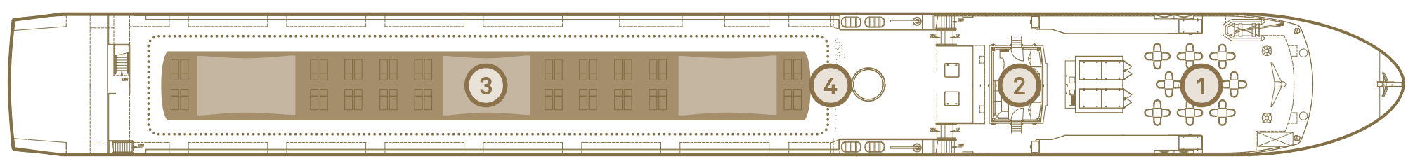 Ideal for those sunlit days on the river, the Sun Deck is a designated open-air space equipped with everything you might need to relax and enjoy the great outdoors on your river cruise – think deck chairs, games area and a bar where you can make the most of our all-inclusive service.