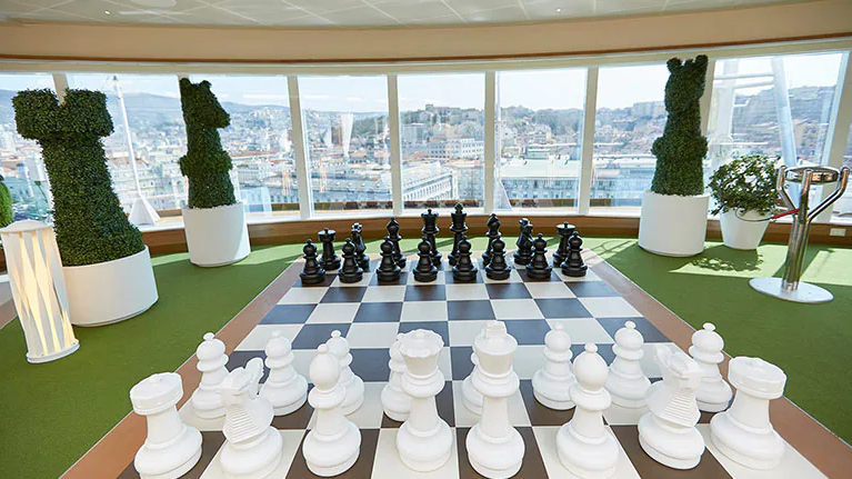 Stroll through our new indoor garden located 150 feet above the sparkling ocean. You're welcomed by the sound of chirping birds, a lush garden environment and plush resort furniture. Listen to intimate musical performances by live musicians, and play a game of chess using life-sized pieces. A Wishing Wall, the first of its kind at sea, allows guests to share their dreams on a mosaic tile wall.