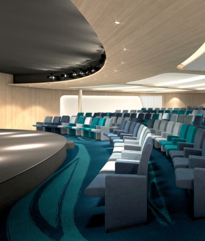 The Theatre* is the most unique meeting space on board. It's the largest space on the ship and regularly accommodates all the passengers. It plays host to shows and entertainment as well as conferences from our experts, naturalist guides and guests of honours. The Theatre makes every cruise unique and enriching thanks to its constant and very accessible events.