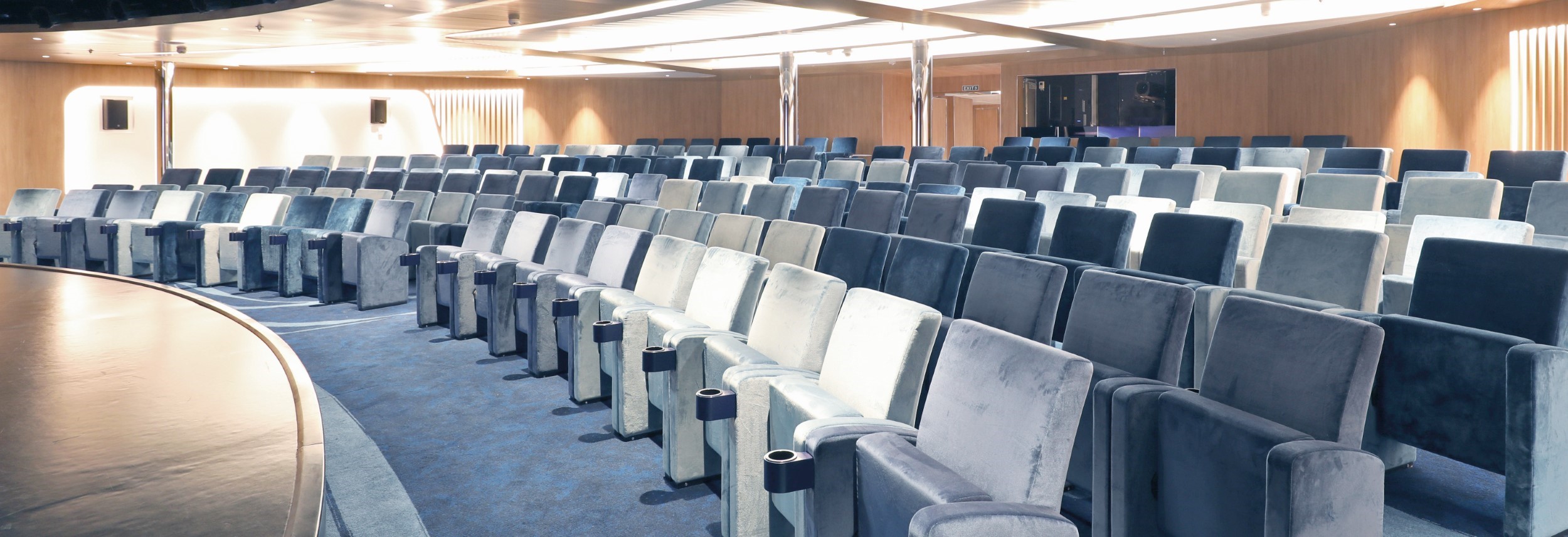 The Theatre* is the most unique meeting space on board. It's the largest space on the ship and regularly accommodates all the passengers. It plays host to shows and entertainment as well as conferences from our experts, naturalist guides and guests of honours. The Theatre makes every cruise unique and enriching thanks to its constant and very accessible events.
