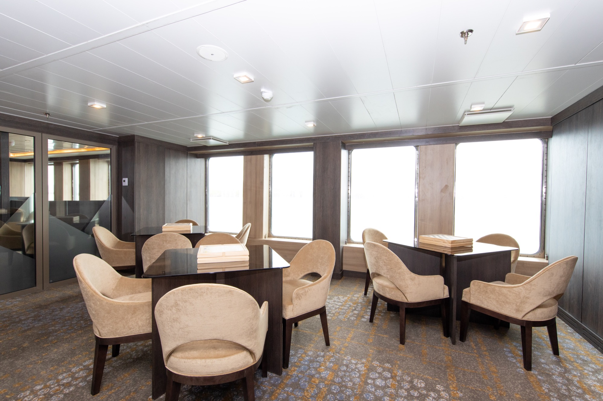 Our theater-style auditorium on Deck 4 can easily accommodate everyone on board, so it serves as our main hall where presentations and videos are provided for your education and enjoyment.
