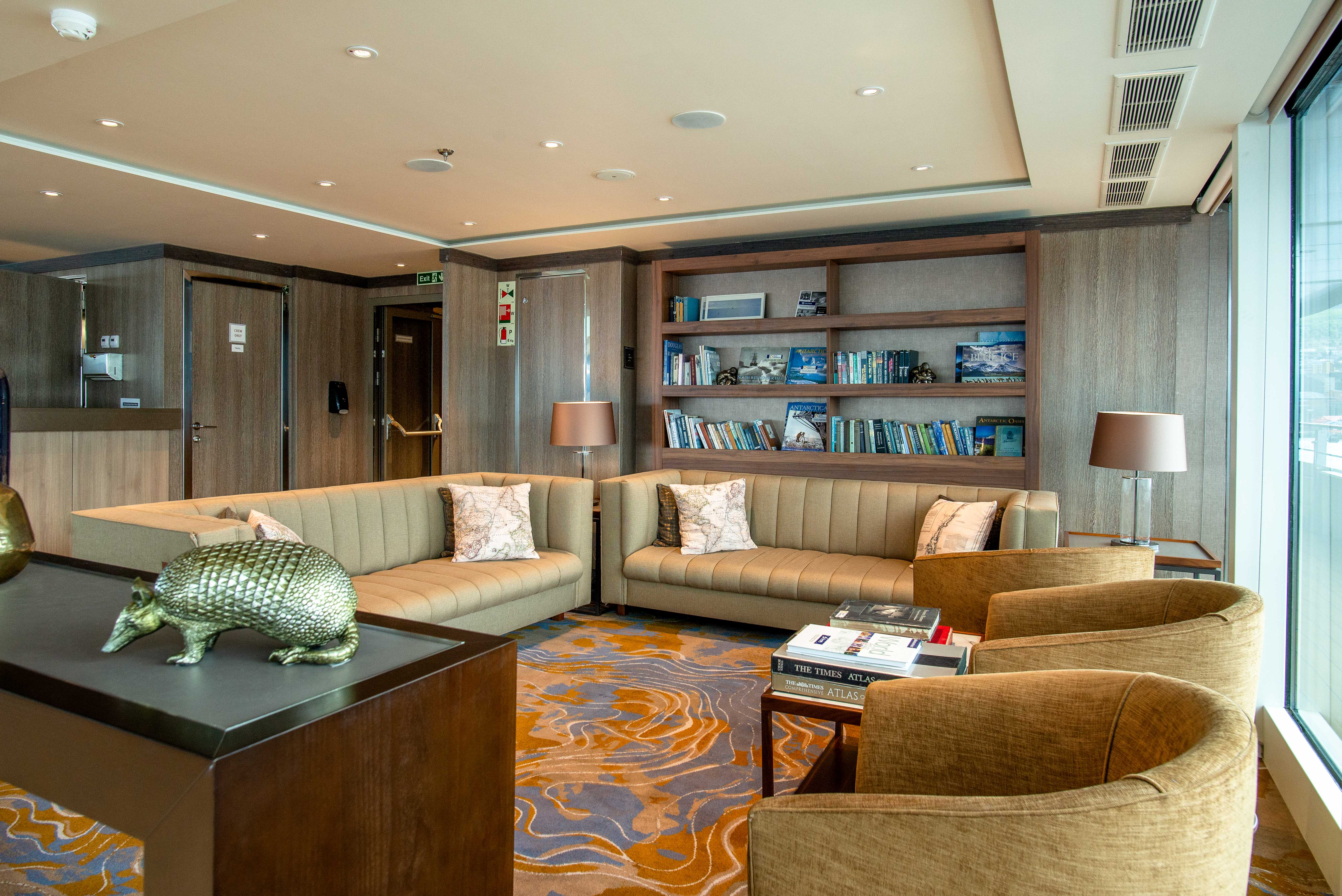 Located in the Observation Lounge on Deck 7, the library includes a selection of field guides, picture books and reference books.