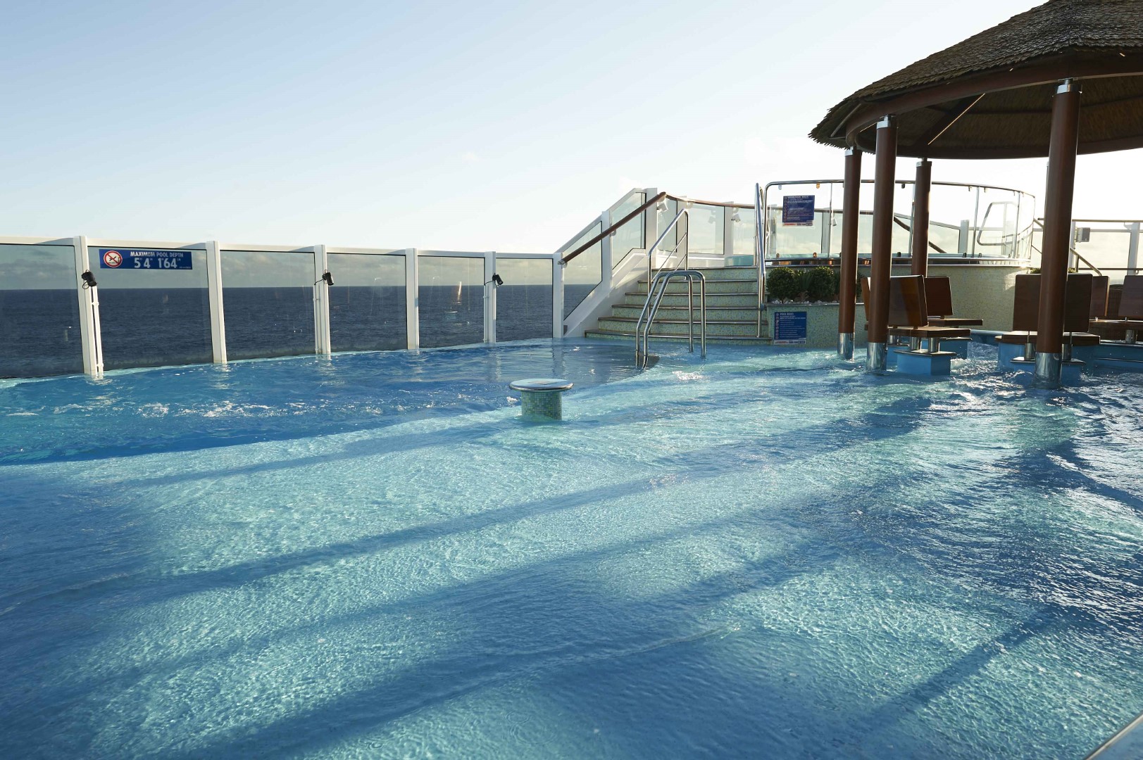 POOL DAY! Whether today's the day for a bit of a dip, a dash of splash or even some swimming — or just a serious poolside lounging session — your Carnival cruise has just the pool for you. In fact, pools are so important to a great cruise that we designed many of our ships to have two of them. At an aft pool you'll catch a breeze, plus a sea view featuring the ship's wake, while midship pools have a grand view of a different kind: the big screen's right there for the viewing. And no matter which you find yourself chilling in, the sunbeams are yours for the soaking.