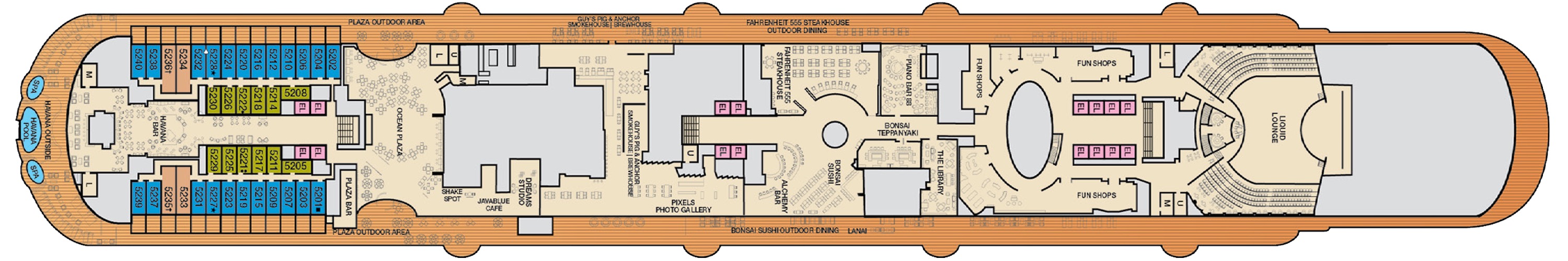 If your Carnival ship has Ocean Plaza, what can you expect from this spot? Oh, you know, a little of this, a little of that… and really, a lot of fun. Basically, think of Ocean Plaza as an indoor entertainment spot that plays host to live music events, plus trivia, dance classes, games and more. And while all that’s going on, it never leaves you far from all the sunny, breezy goodness you get from the great outdoors of the sea. Oh, and when nature’s all done sunning you for the day, it transforms into a night spot that’s seriously stunning. Get your nightlife — not to mention your daylife — done at Ocean Plaza.