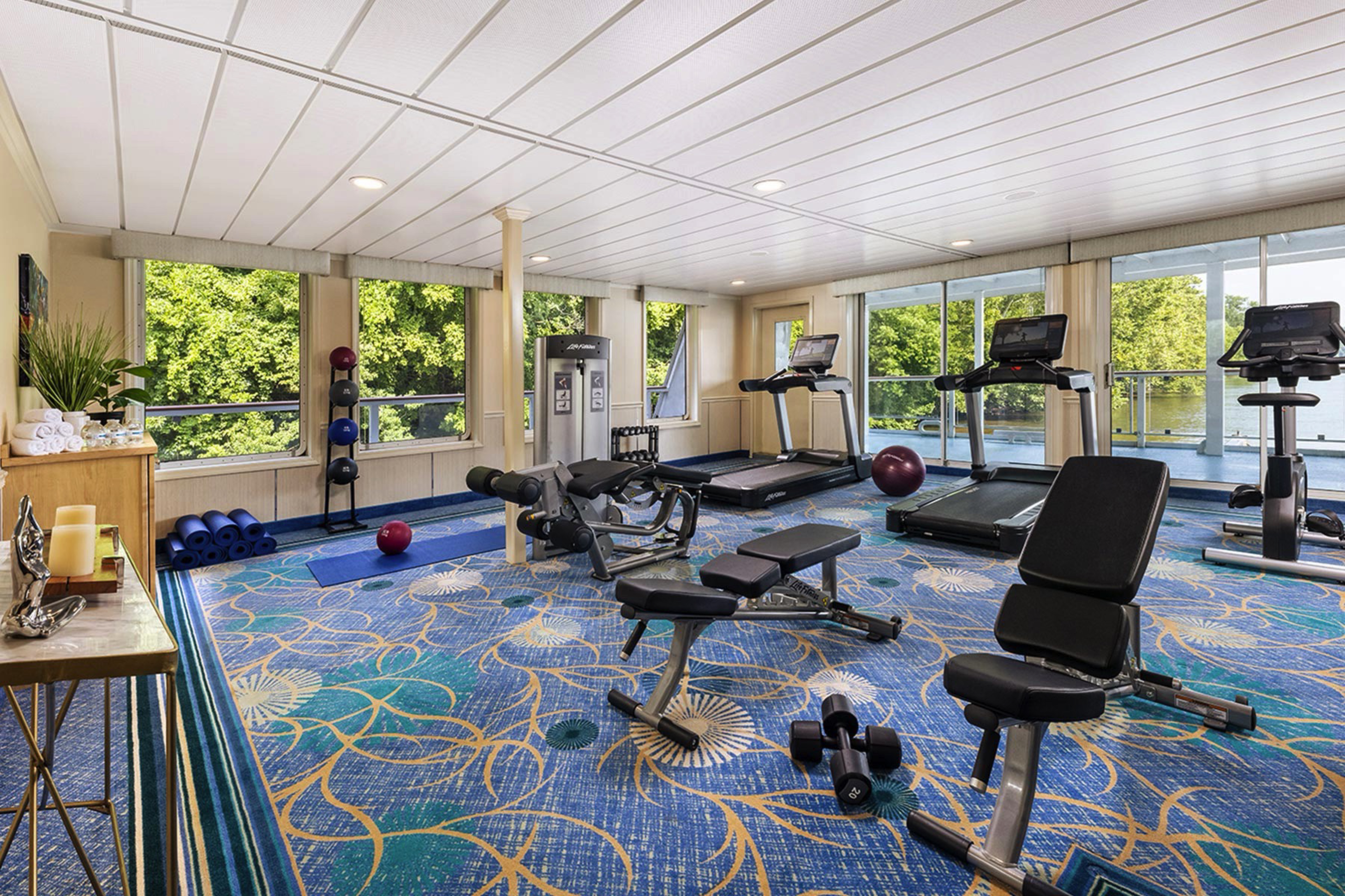 Our on-board Fitness Center boasts a wide assortment of state-of-the-art exercise equipment, catering to every fitness enthusiast's needs. From treadmills and elliptical machines to free weights and resistance training equipment, guests can continue their workout regimen while enjoying rolling river views.