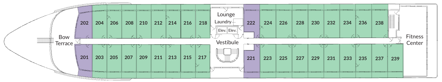 Select any deck plan to see more details. Once clicked, hover over the image to zoom.- Elevator