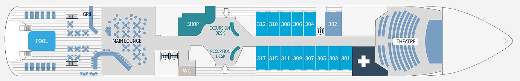Select any deck plan to see more details. Once clicked, hover over the image to zoom.- Theatre