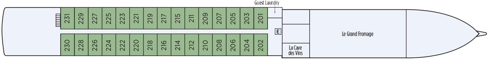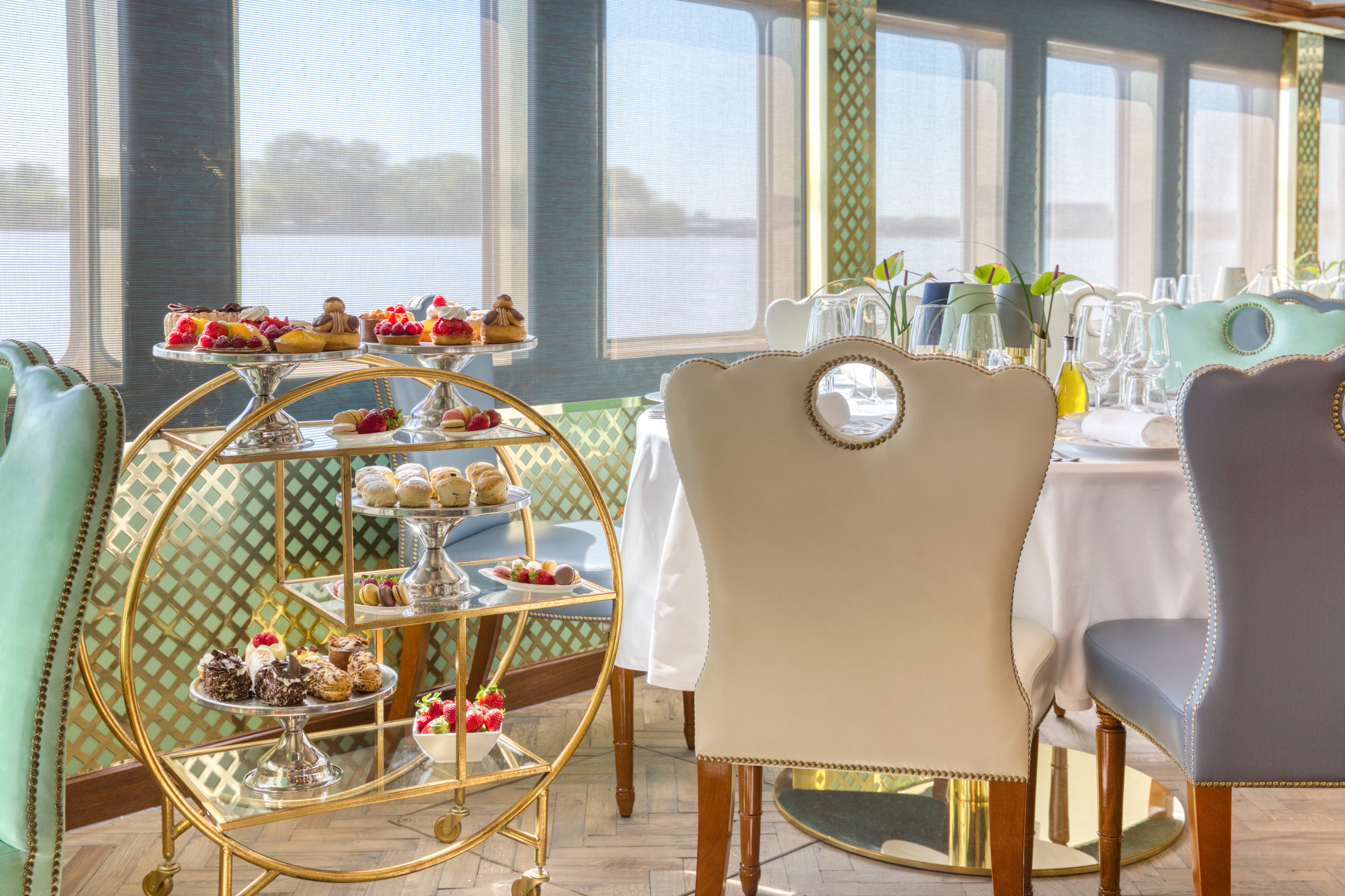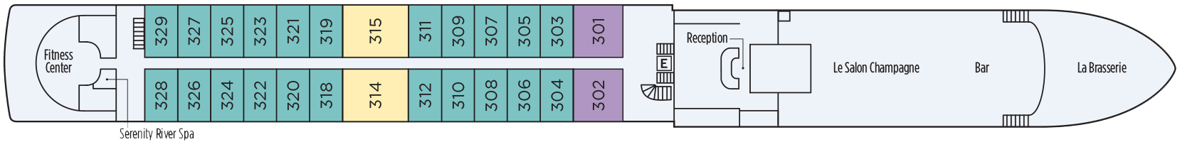The Salon Champagne boasts a panoramic view, a full-service bar, and a dance floor. Thanks to its close proximity to the onboard library, it's the perfect place to unwind with a good book, or partake in lively conversations with like-minded passengers.