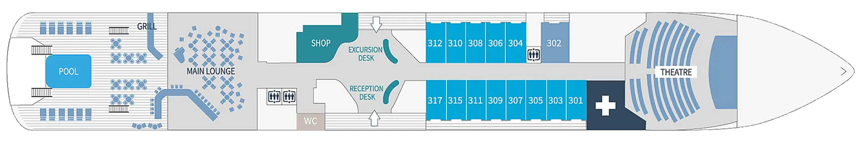 Select any deck plan to see more details. Once clicked, hover over the image to zoom.- Theatre