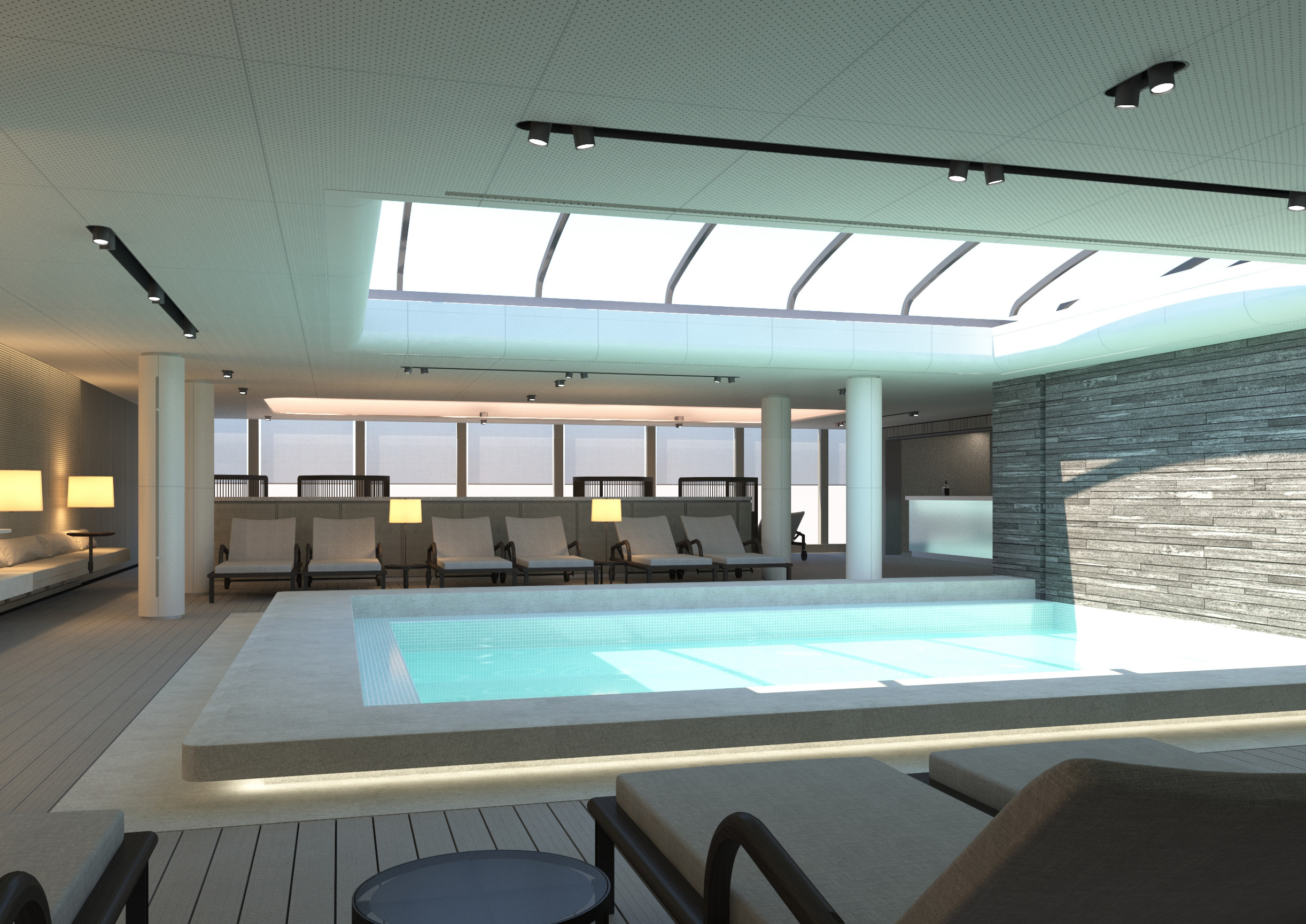 - Blue Lagoon pools, an outdoor heated lagoon with a temperature that ranges from 27 to 37° C using recycled energy from the ship