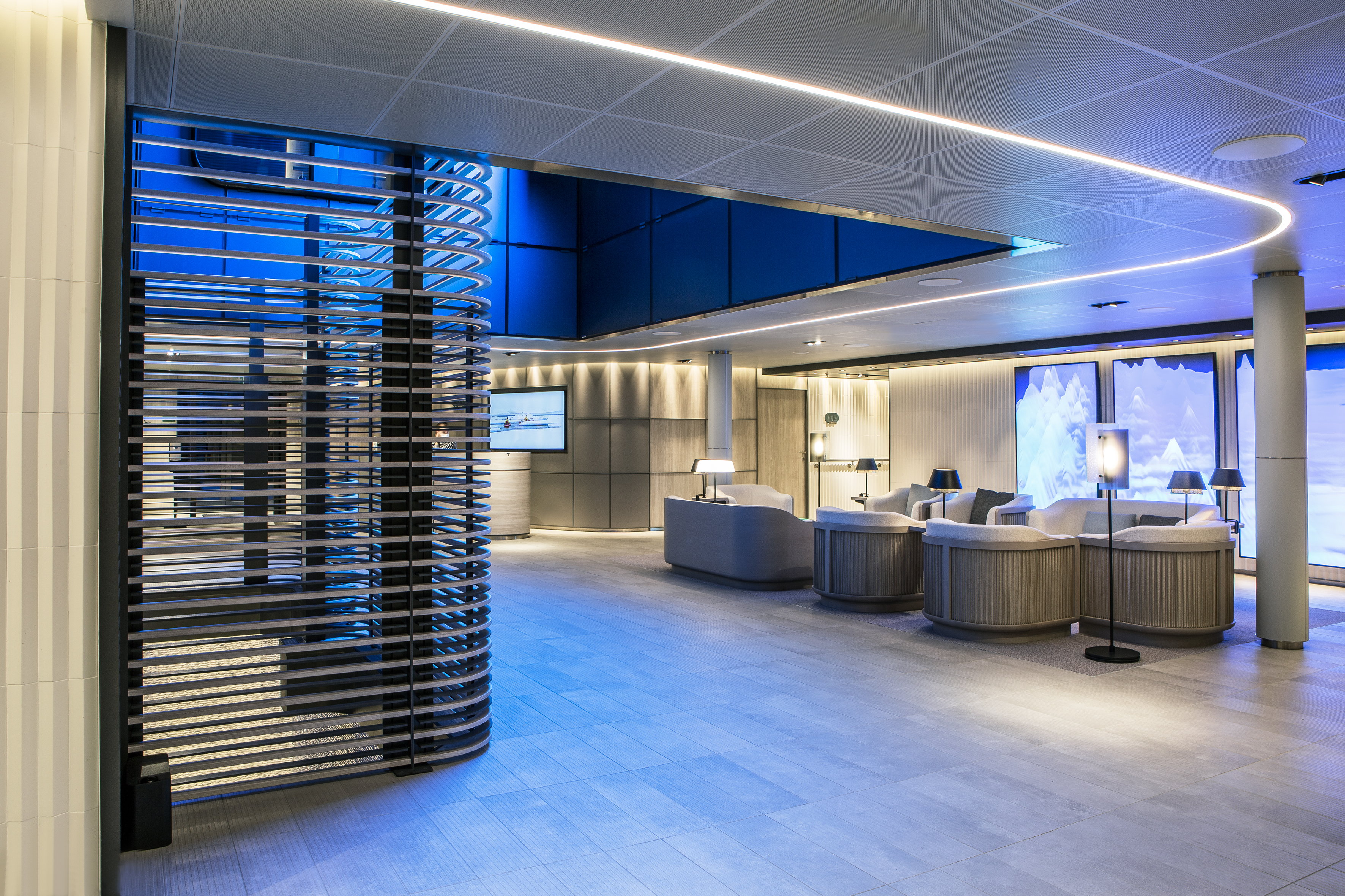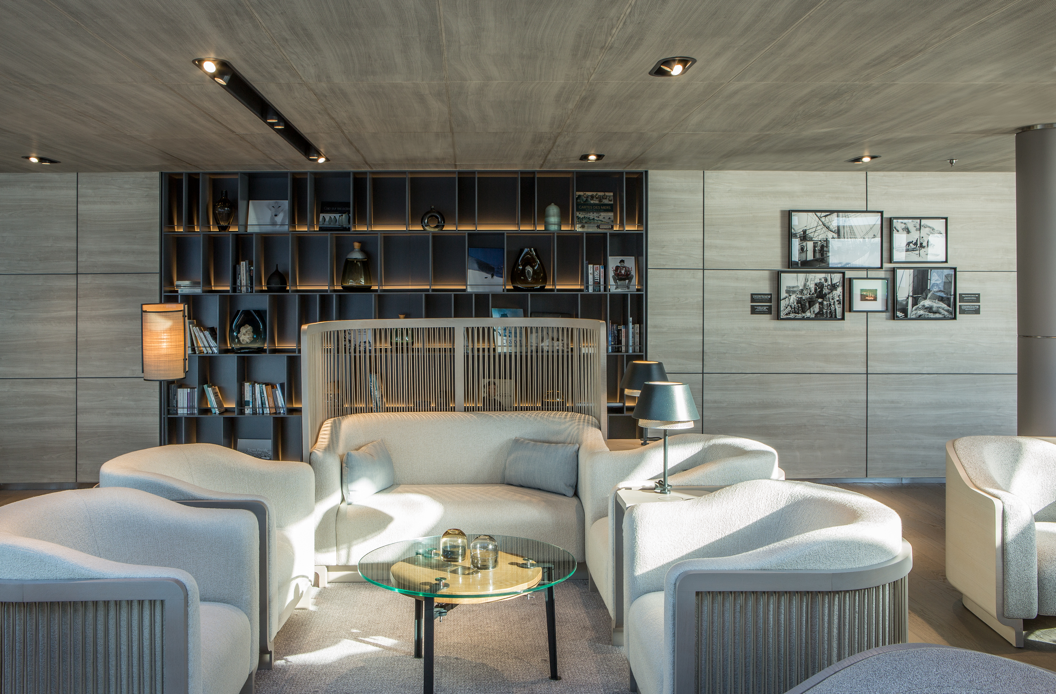 A hair salon facing the boundless horizon, massage cabins with large windows, a sauna with an unobstructed view of the immense white polar expanse… The wellness areas on board Le Commandant Charcot take on a new dimension. These spaces, designed by Jean-Michel Wilmotte, combine design and comfort, and have been created with expert know-how using responsible brands.