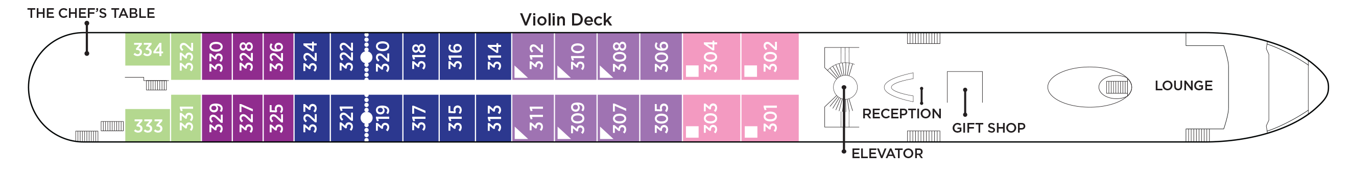 Select any deck plan to see more details. Once clicked, hover over the image to zoom.- Elevator