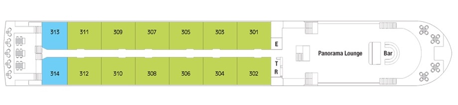 MS Andorinha has been specifically designed for cruising Portugal’s golden Douro River; the newly built 80-meter (263-foot) custom Douro riverboat sports a deck plan optimized for the utmost in spaciousness. The ship boasts 12 spacious 300-square-foot Tauck Suites, 20 225-square-foot cabins, six 200-square-foot cabins, and four 150-square foot cabins.