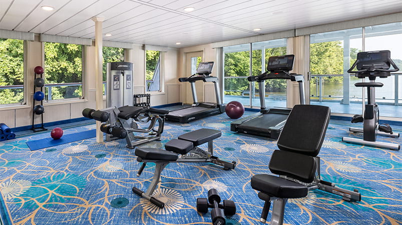 Our on-board Fitness Center boasts a wide assortment of state-of-the-art exercise equipment, catering to every fitness enthusiast's needs. From treadmills and elliptical machines to free weights and resistance training equipment, guests can continue their workout regimen while enjoying rolling river views.