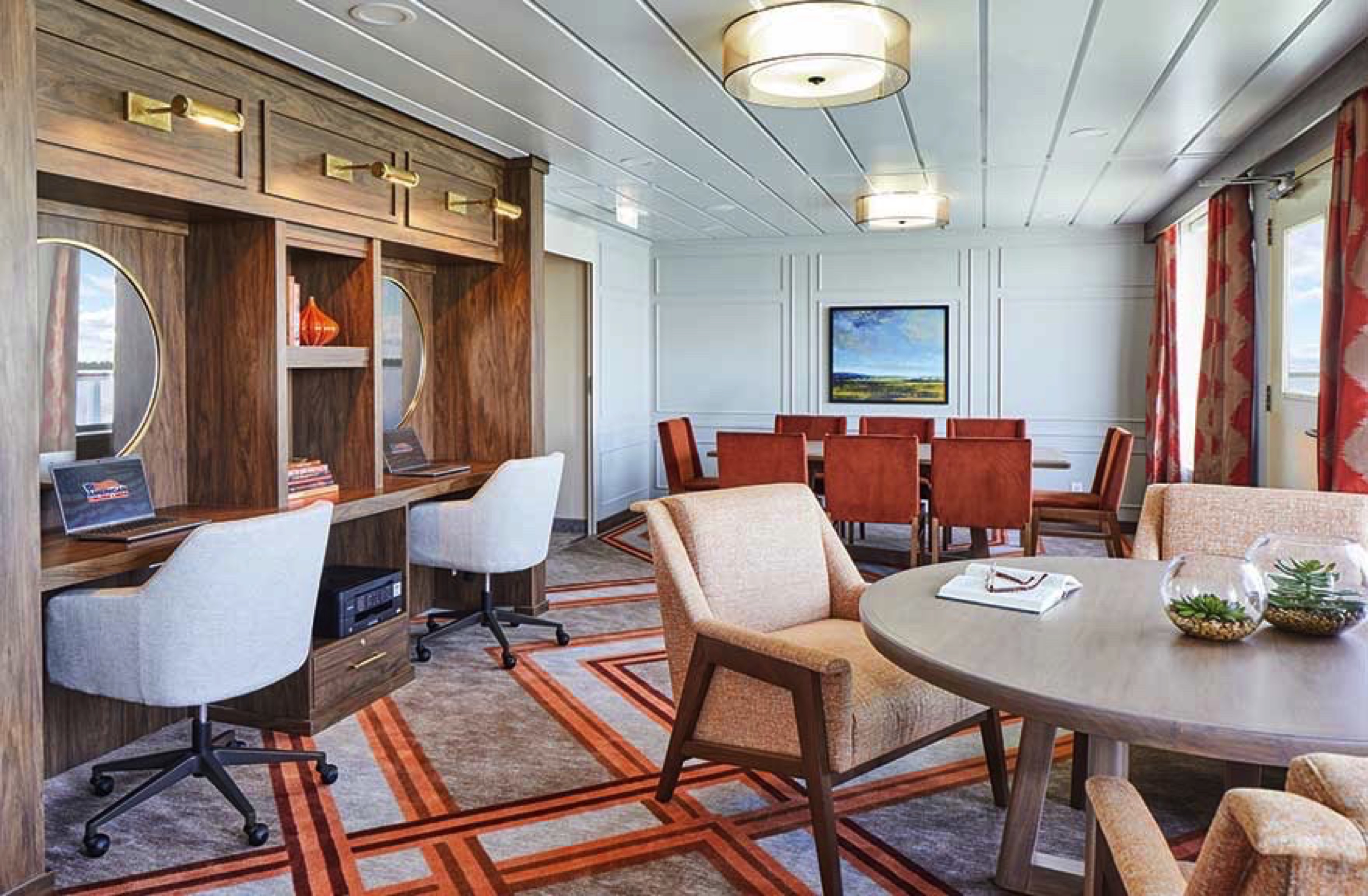 Deck 5 - This mid-ship lounge offers a peaceful enclave for reading a favorite book, having a quiet conversation, or simply reflecting on your adventures and those still to come. The cozy ambiance and thoughtfully designed furnishings invite guests to unwind, enveloped in a sense of calm amidst the excitement of the voyage.