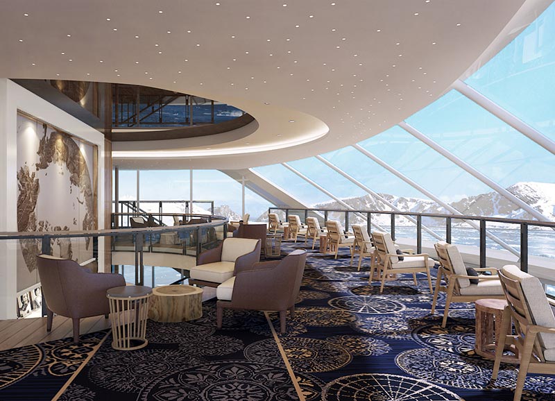 A favorite location on our ocean ships, the Explorers’ Lounge is inspired by epic journeys of discovery. Two levels high and surrounded by panoramic windows, this inviting space is the perfect place to relax with friends, while taking in the scenery.