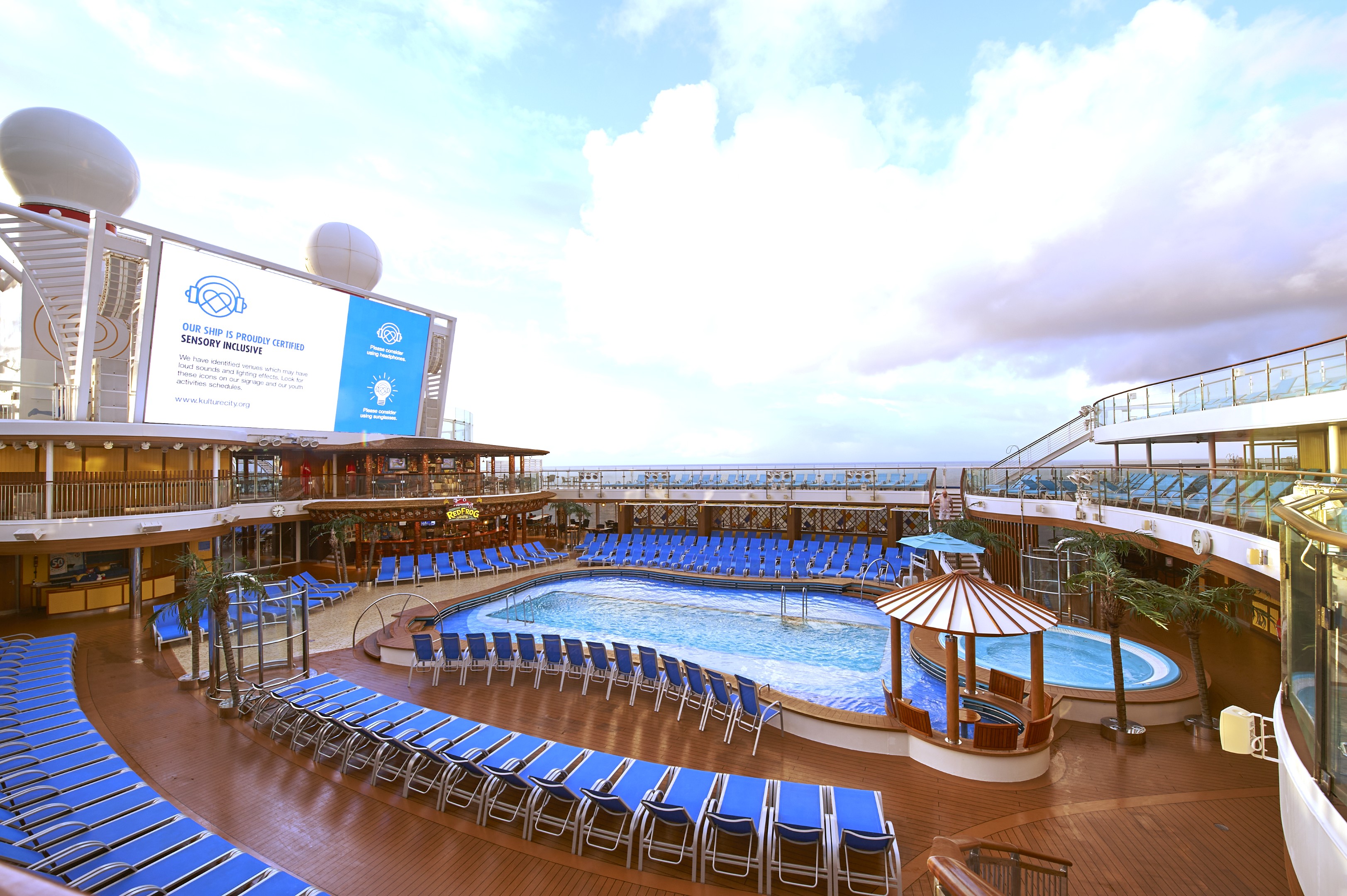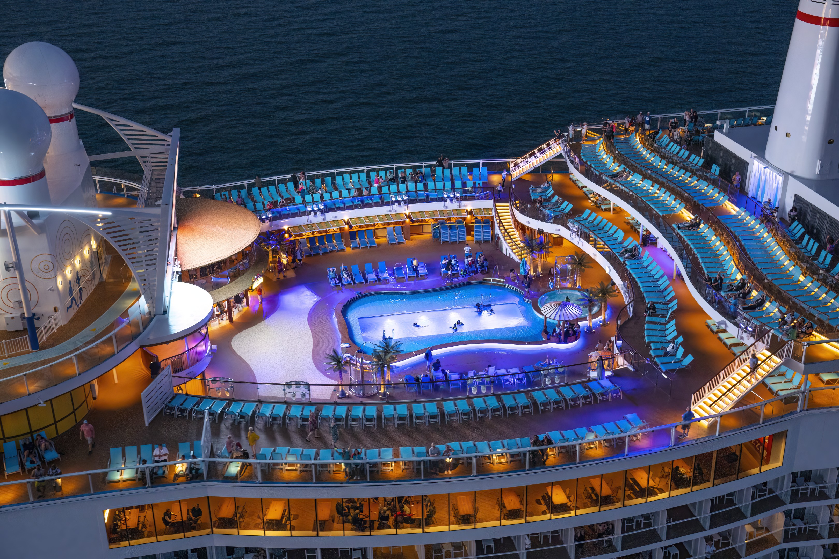 POOL DAY! Whether today's the day for a bit of a dip, a dash of splash or even some swimming — or just a serious poolside lounging session — your Carnival cruise has just the pool for you. In fact, pools are so important to a great cruise that we designed many of our ships to have two of them. At an aft pool you'll catch a breeze, plus a sea view featuring the ship's wake, while midship pools have an grand view of a different kind: the big screen's right there for the viewing. And no matter which you find yourself chilling in, the sunbeams are yours for the soaking.