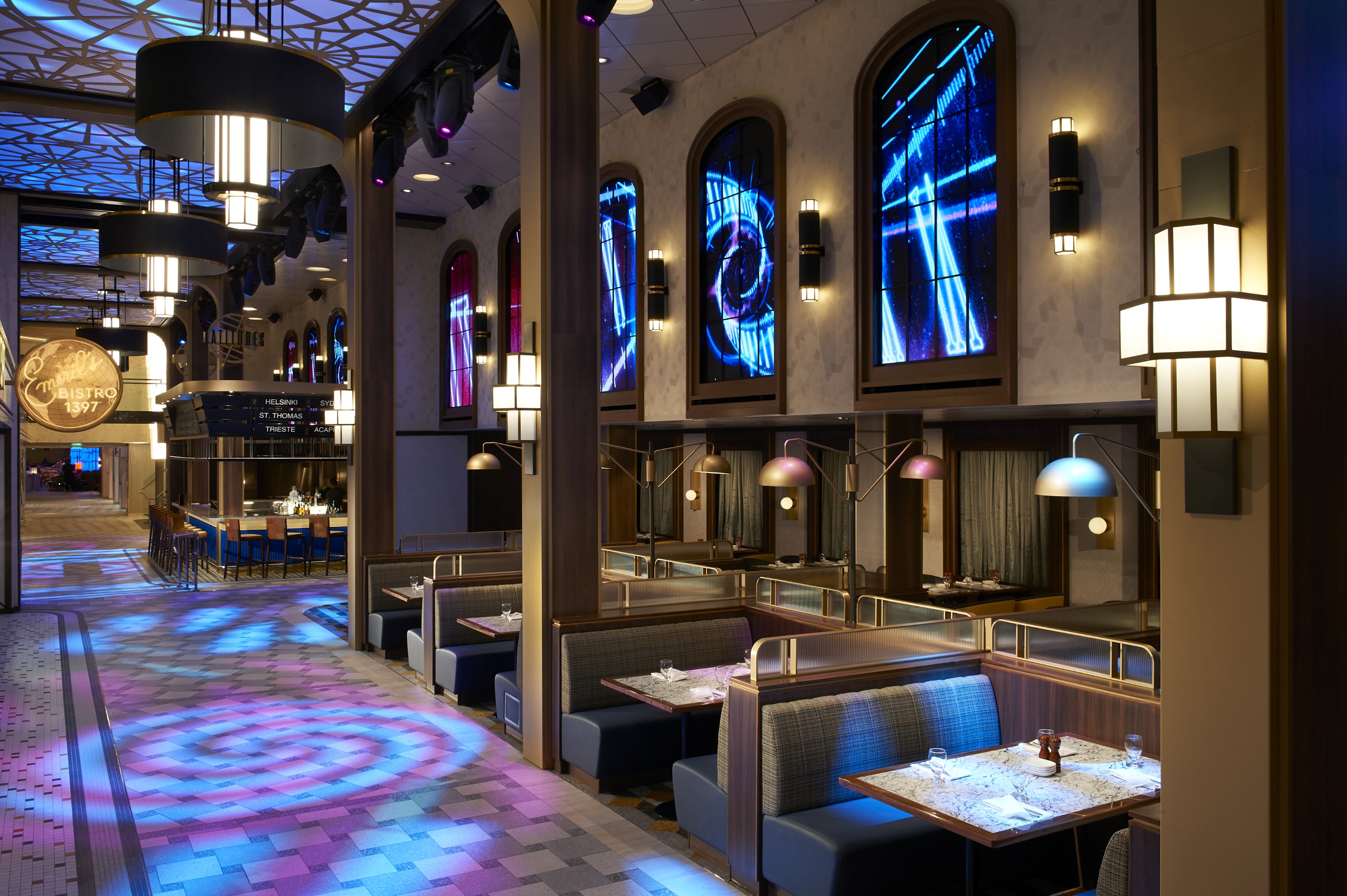 The classic railway-inspired mechanical flap board is definitely the first thing you’ll notice about Latitudes™, but what sticks with you about this bar may just be something else. For instance, the drinks: specialty cocktails crafted not just to refresh, not merely to delight… but to actually match the scenery. What scenery, you’re wondering? At Latitudes no matter where we’re sailing, the views come to you from any corner of the world. Innovative virtual windows invite you to take in some of Earth’s most breathtaking views as you sit back and sip something delicious, whether you’re here for a special event, an occasion celebration… or simply a delicious departure from the ordinary.