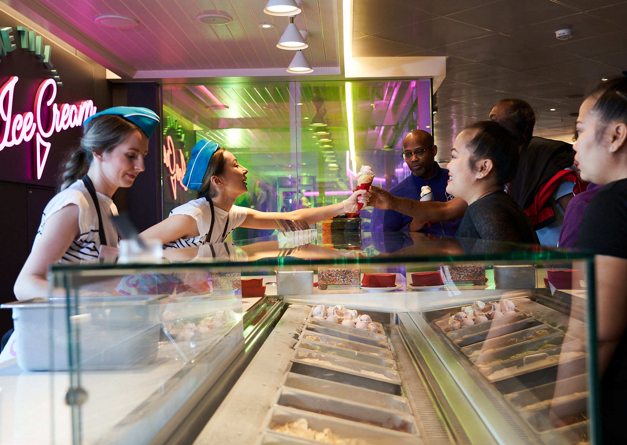 With six home (er... ship) made flavors to choose from, our scoop shop is the perfect stop for a mid-day or late-night snack. Vegan? Don't worry — we got you covered.