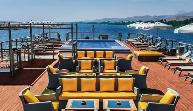 On the top deck of Oberoi Philae take in the views of the passing landscape before stepping into the temperature controlled pool, a perfect way to relax and cool off during those hot days under the Egyptian sun. If you're feeling hungry, the nearby restaurant, Poolside Restaurant, is perfect for light meals and snacks and serves up a special barbecue lunch menu.