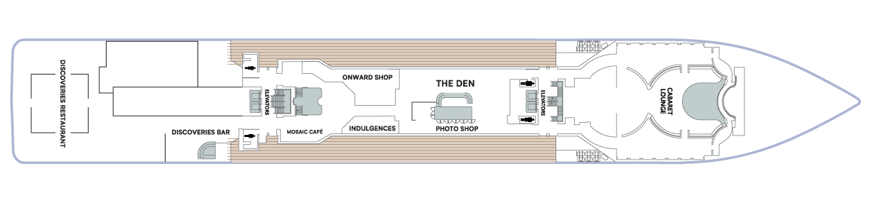 This lounge exemplifies our dedication to Destination Immersion® experiences. The Den inspires you with tools to travel to all corners of the world with tools to travel to all corners of the world with travel books, guides, and destination- focused activities.