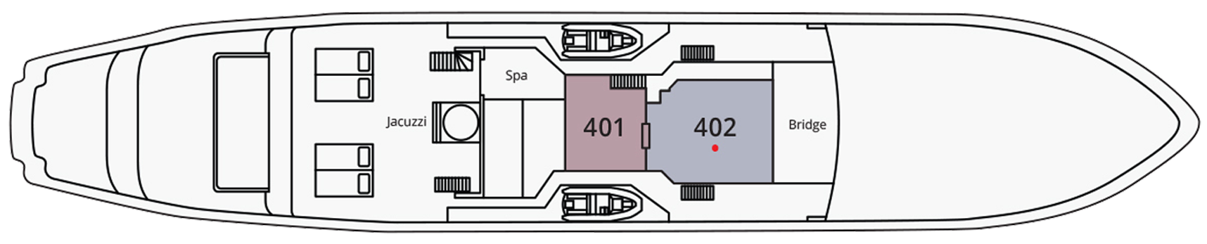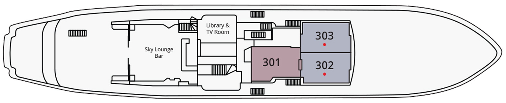 With an elevated vantage point, the Sun Deck offers spectacular 360-degree views wherever you sail in the picturesque East Indonesia region. Equipped with a barbecue, outdoor seating with umbrellas and wraparound lounge sofas, this is the perfect location for sunrise yoga, evening grill party or night stargazing.