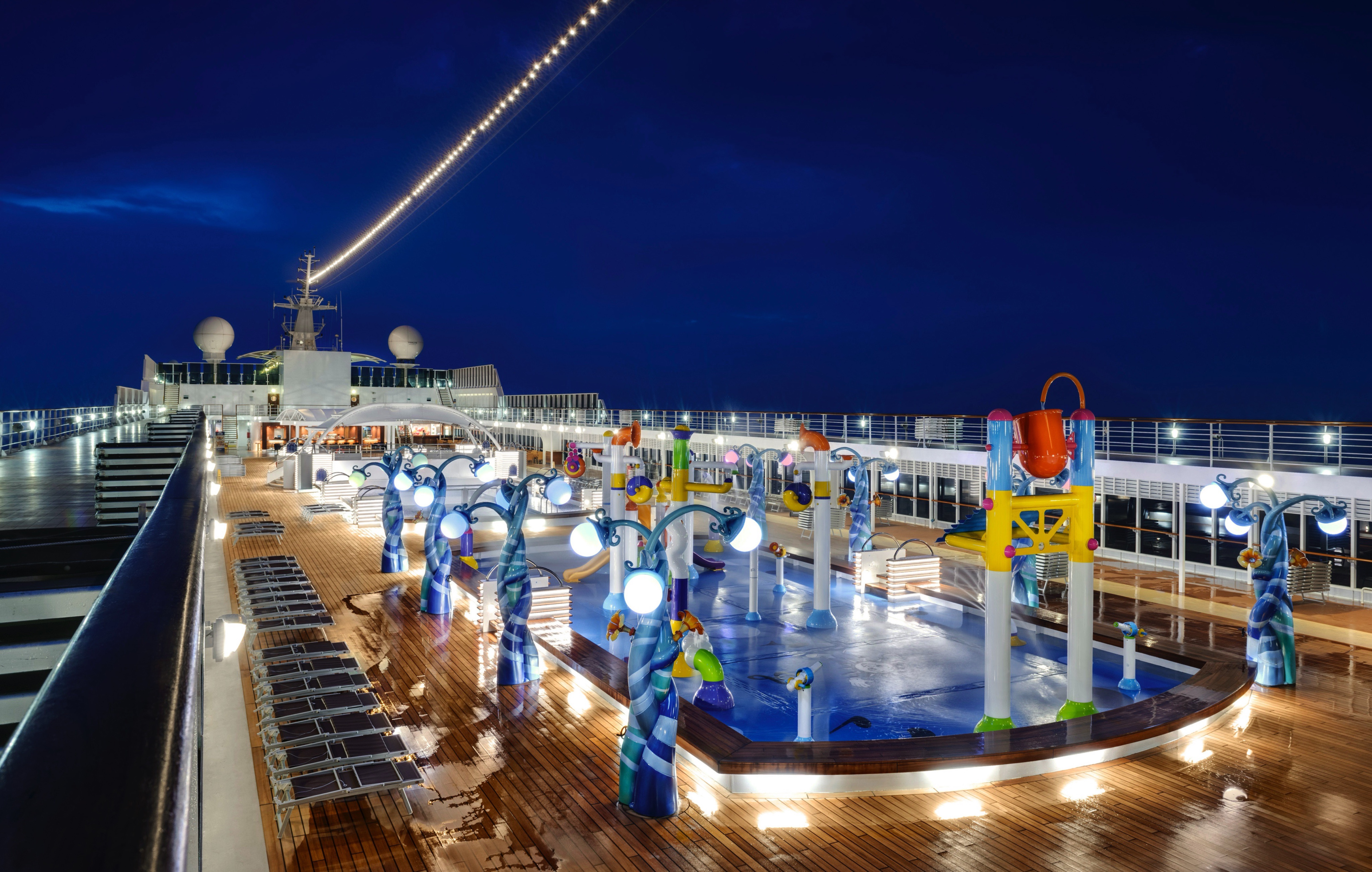 A resort ship that accommodates∘ over 1,700 passengers. Guests can dine on fine, authentic Italian-style dishes, and relax with a variety of entertainment options aimed towards both adults and children. The ship provides a glamorous, eye-catching interior, featuring fine woodworks, marble floors, and acres of vibrant fabrics.