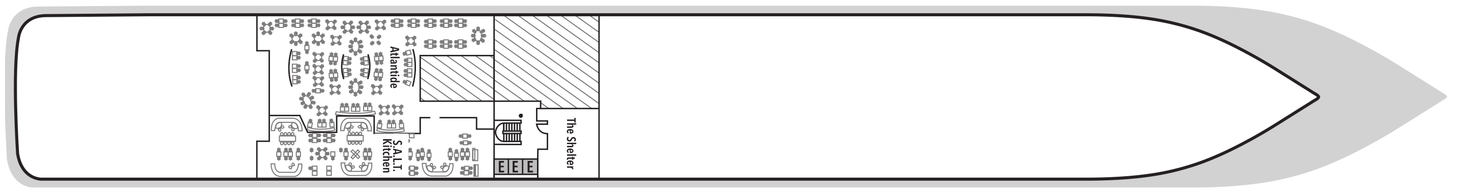 Located on deck 4, the Atrium is the beating heart of Silver Nova. Inspired by Roman architecture, the Atrium’s magnificent windows floods our central meeting areas with abundant natural light. The area is home to both the Arts Café and The Shelter, as well as main service areas such as the Reception, Shore Concierge, and Future Cruise Sales. The Atrium’s enormous glass wall stretches over two decks, guaranteeing a deep connection with your destination whether at sea or docked in port.