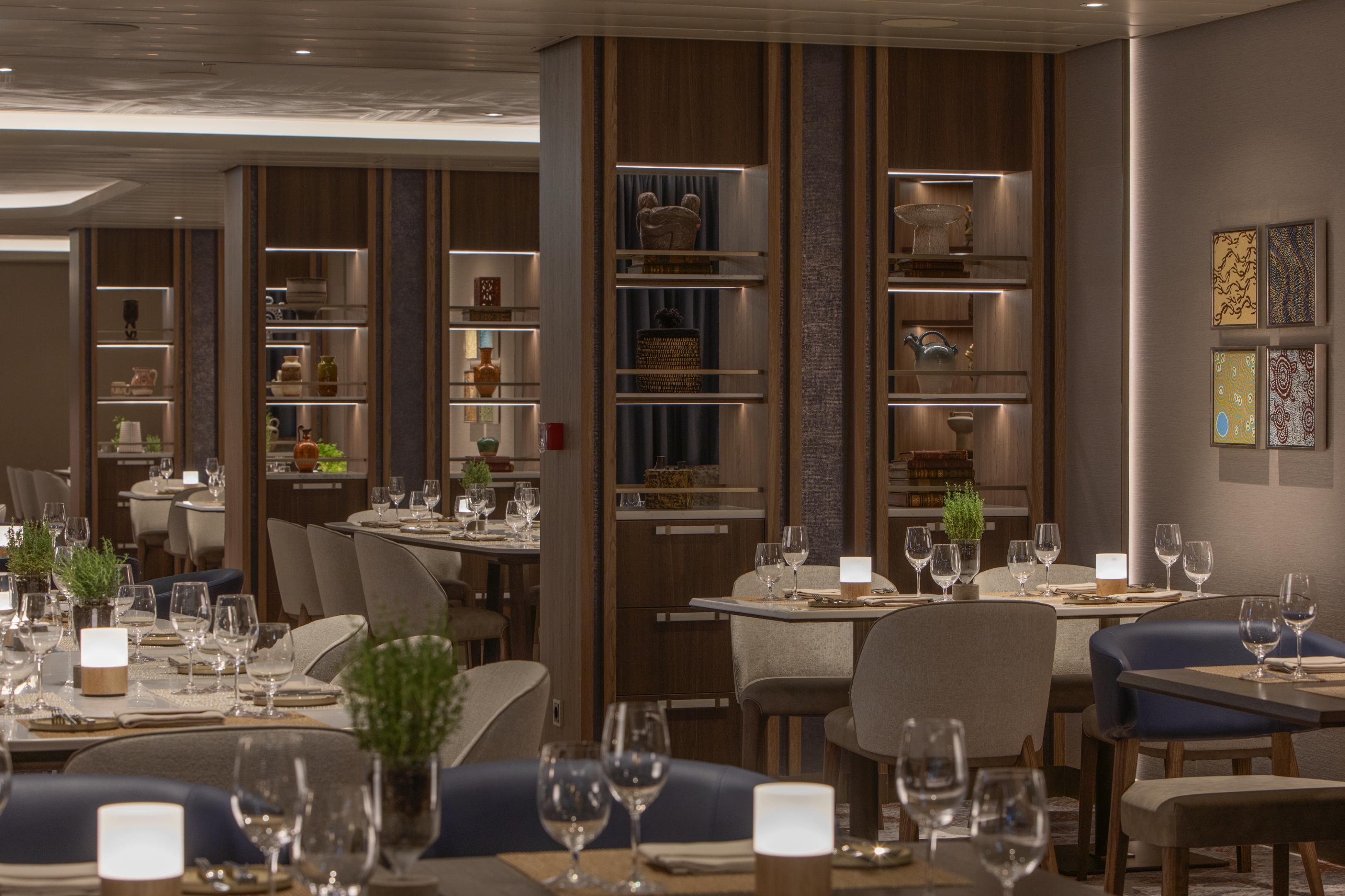 Are you hungry for something new? Eat your way through the places on your cruise in the S.A.L.T. Kitchen. Enjoy destination-inspired menus, including the Terrain menu, which offers recipes and flavors specific to the port visited, and the Voyage menu, which draws inspiration from the best flavors of the voyage. Pull up a chair and savor every taste of your cruise in a vibrant and welcoming atmosphere. S.A.L.T. Kitchen is the opportunity for all guests aboard Silver Nova to experience the very lifeblood of their destination.
