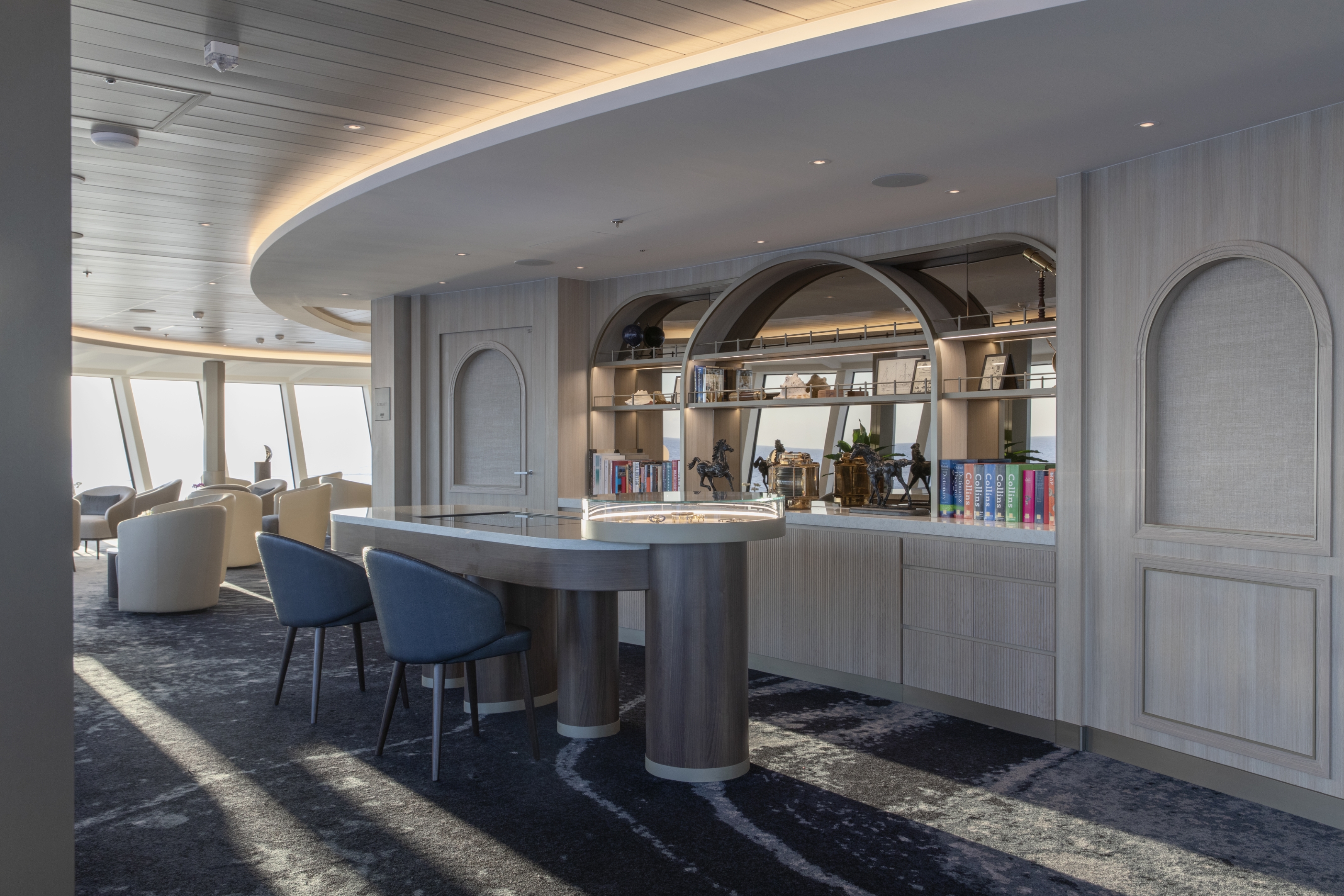 Set on the highest level at the very top of the ship, this is a quiet space for reading and reflection while being dazzled by the undulating seascapes that are part of life on board. Borrow a book from the in-house library, read the papers, or just embrace the tranquility of being at sea.