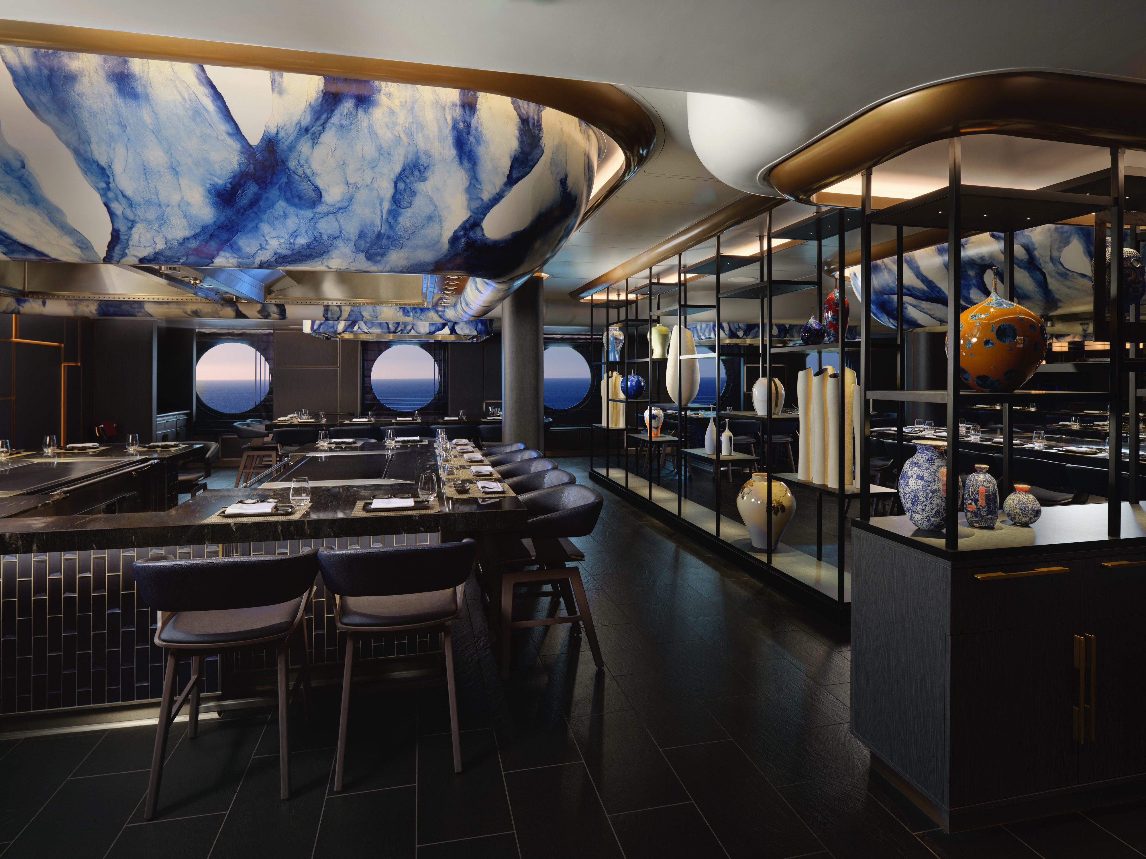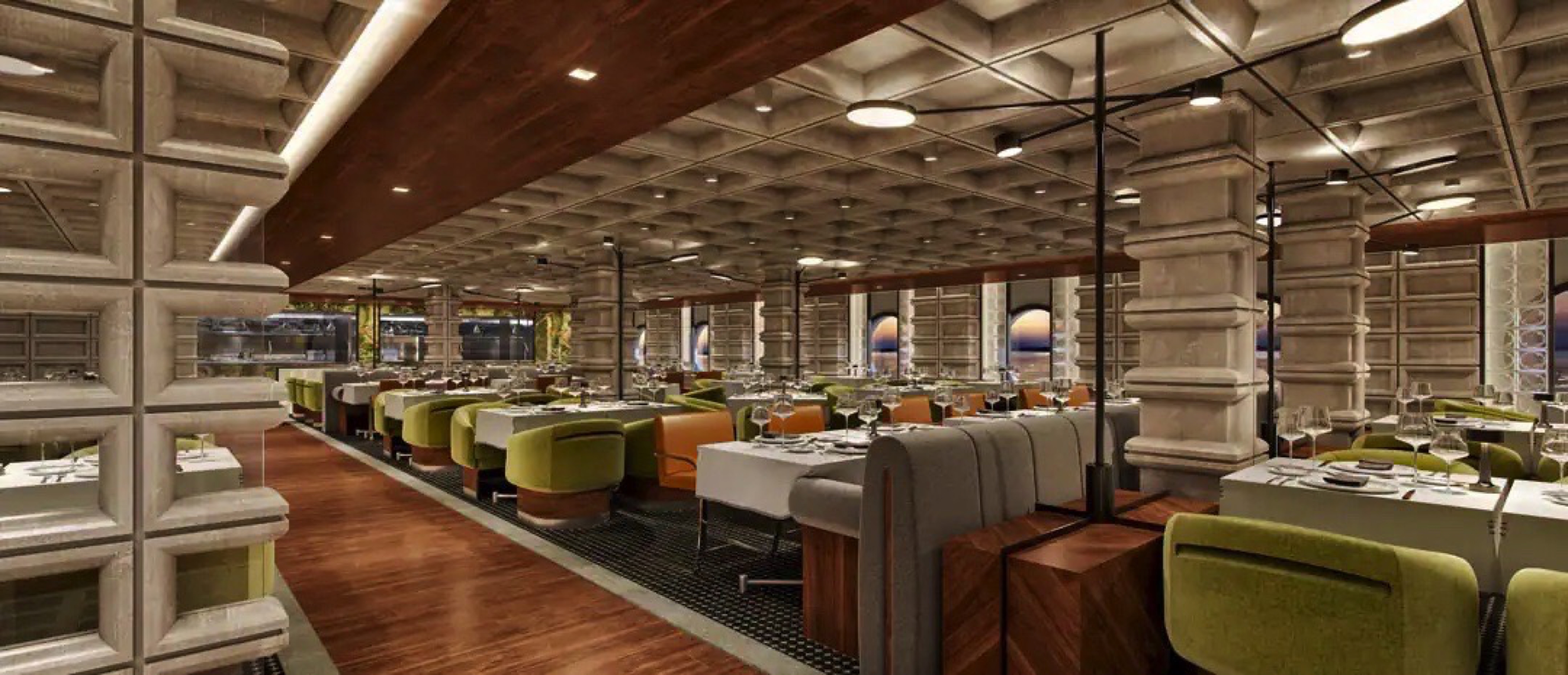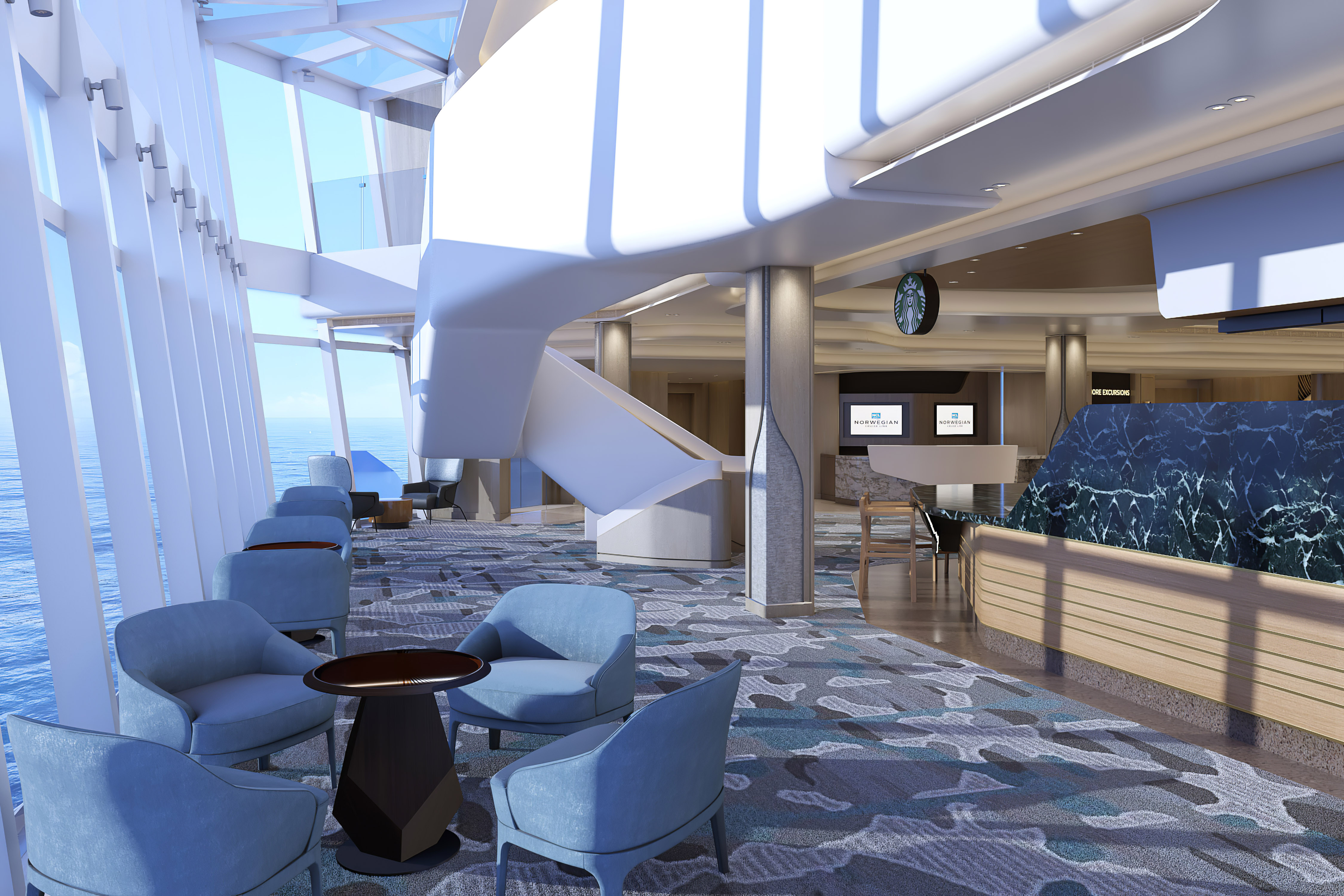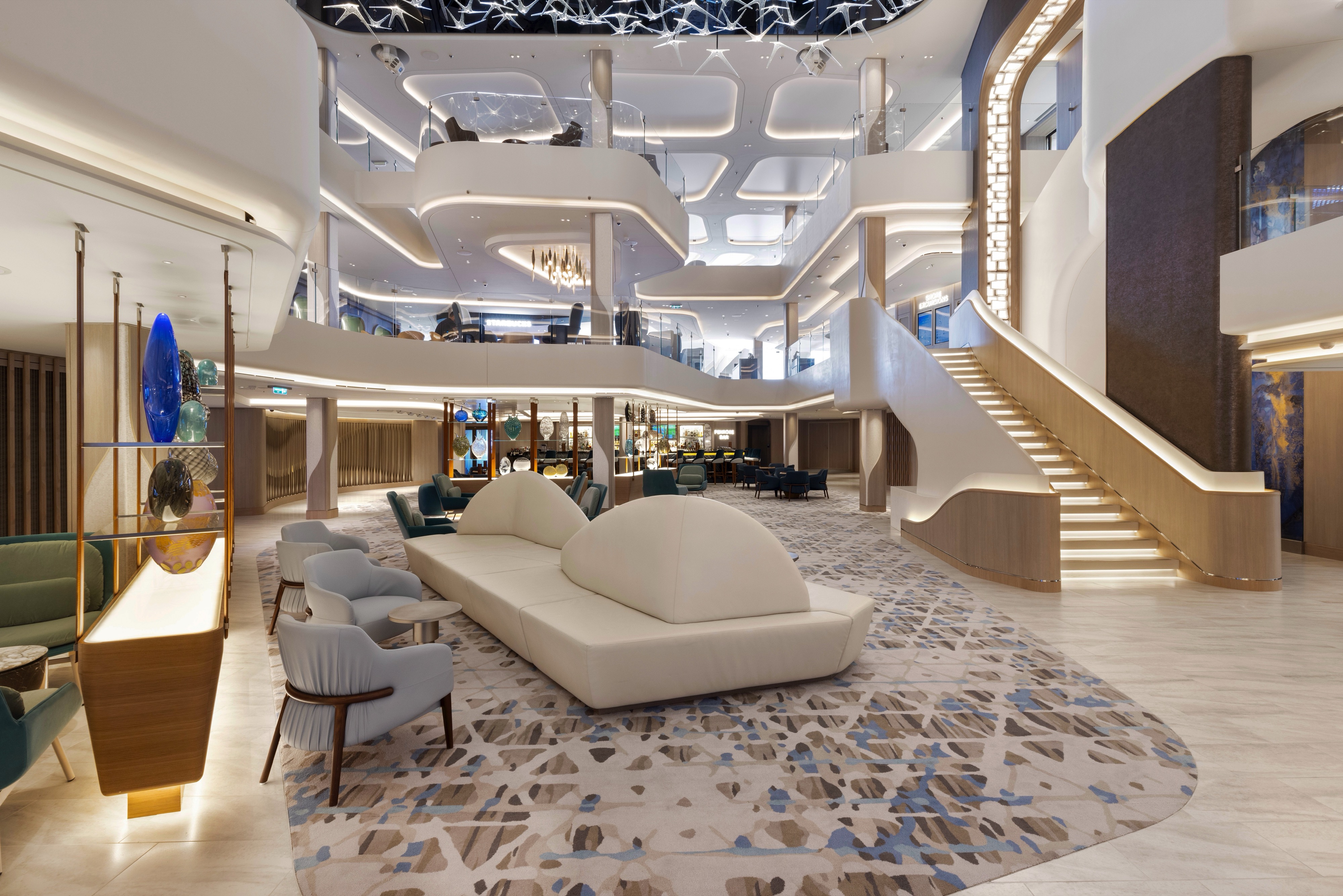 Our first three-story, glass-walled atrium is a breathtaking space filled with restaurants, lounges, and views of the horizon.