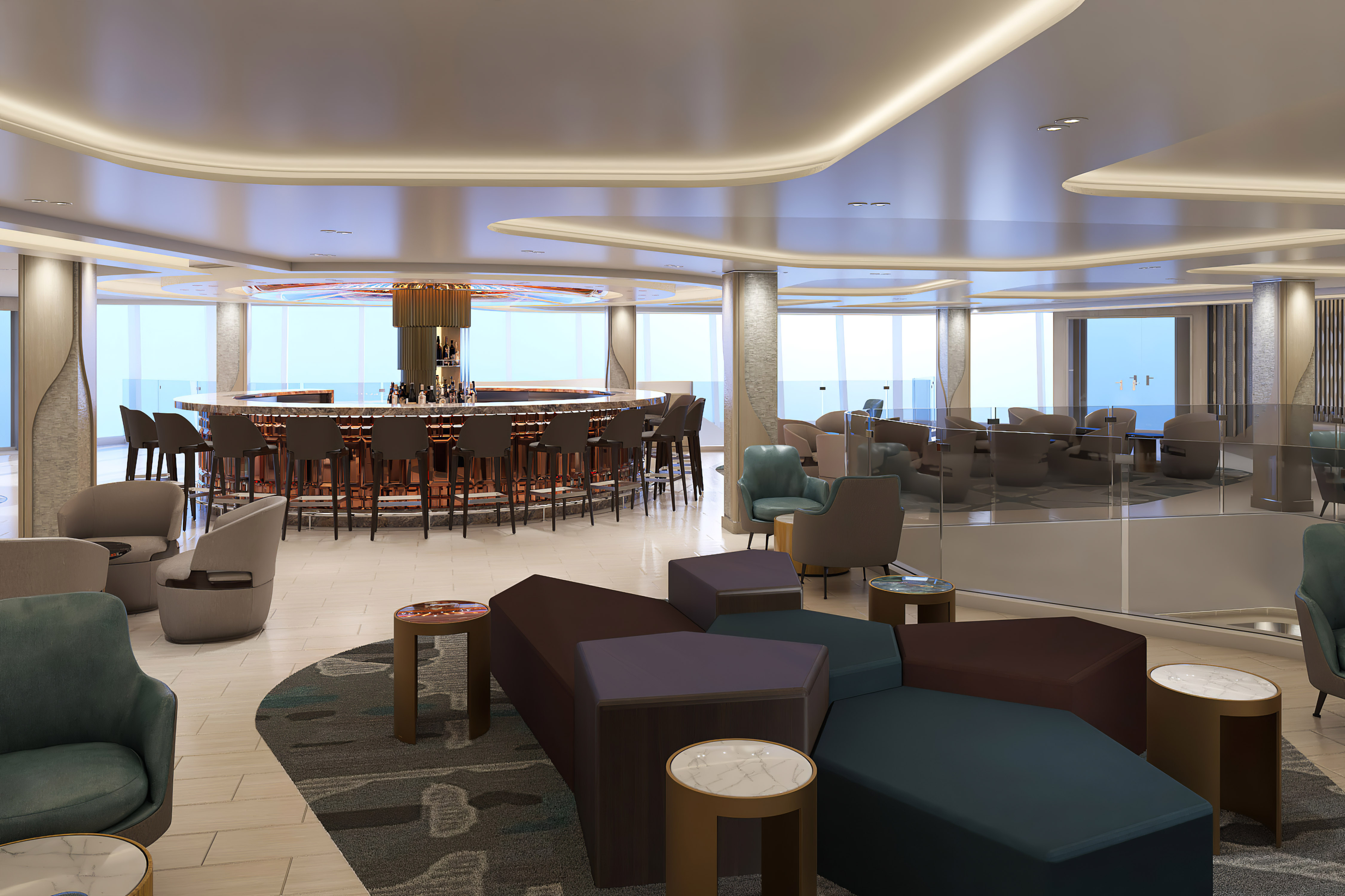 Gaze into the great wide open with a drink in hand at the contemporary and spacious Observation Lounge.