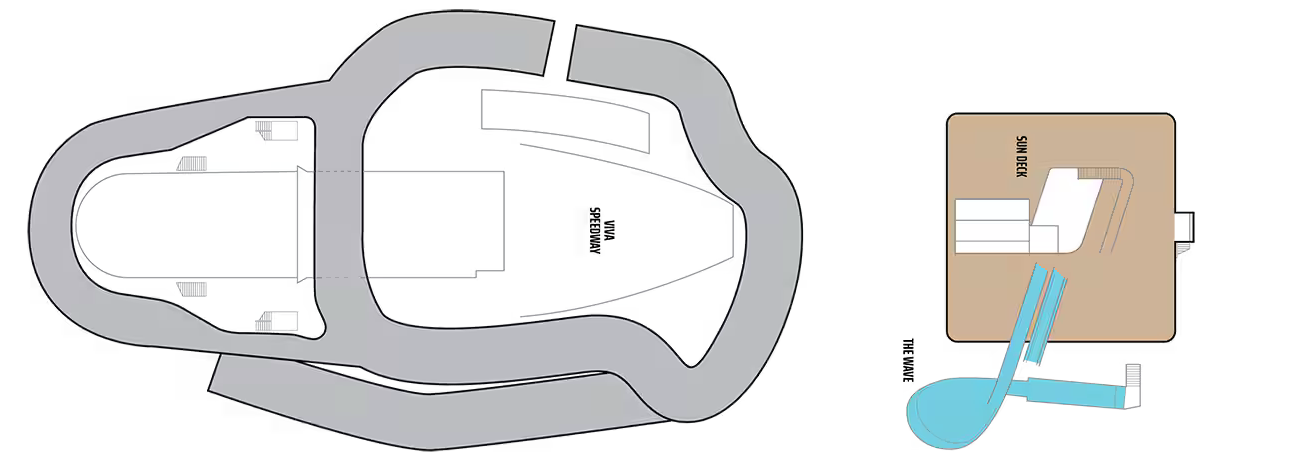 Ready to race the sea breeze like never before? The Viva Speedway is longer, larger and zoomier than ever. Be the first to speed across the horizon on the first three-level race track at sea.