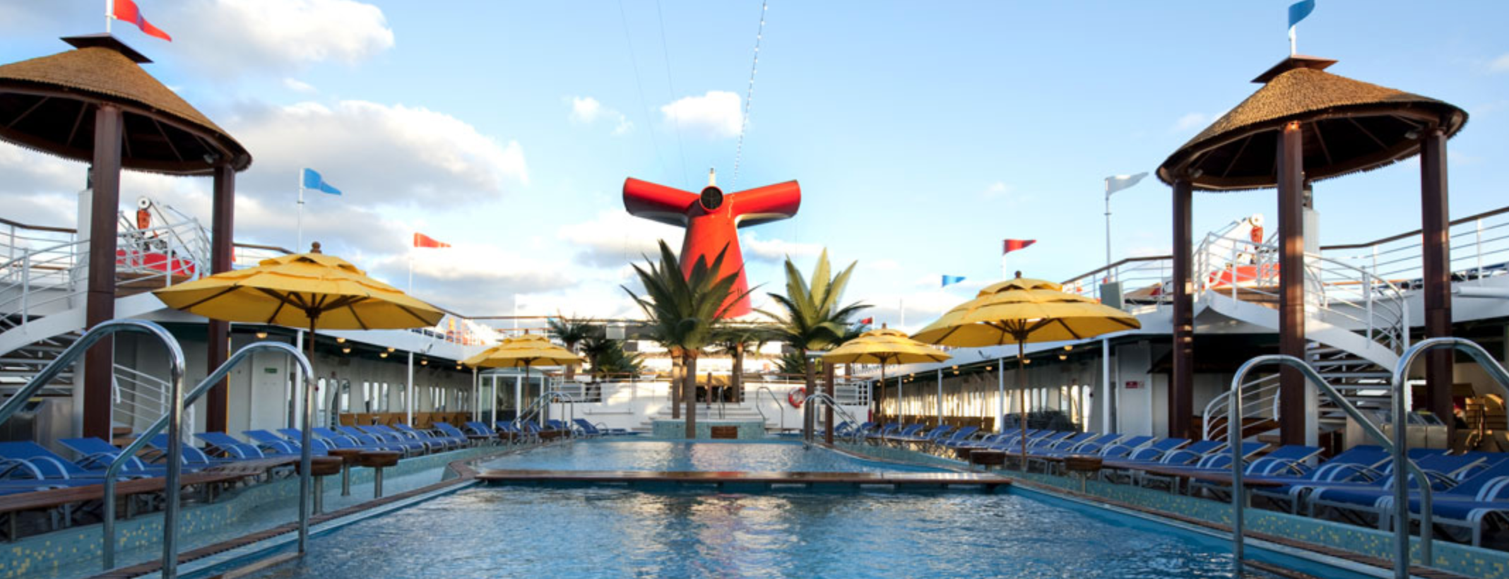 POOL DAY! Whether today's the day for a bit of a dip, a dash of splash or even some swimming — or just a serious poolside lounging session — your Carnival cruise has just the pool for you. In fact, pools are so important to a great cruise that we designed many of our ships to have two of them. At an aft pool you'll catch a breeze, plus a sea view featuring the ship's wake, while midship pools have an grand view of a different kind: the big screen's right there for the viewing. And no matter which you find yourself chilling in, the sunbeams are yours for the soaking.
