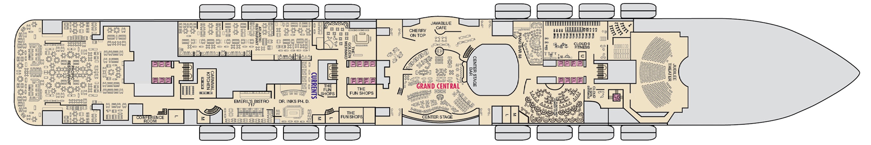 Here’s where you come in! The Atrium — the entrance to the ship and to vacation itself — is your first impression of all the fun to come. We make sure that this, the very heart of the ship, screams “welcome aboard the fun!” With multi-level panoramic views, the Atrium gives you the perfect place to enjoy all the hustle and bustle. There’s always music playing here, whether it’s a live band or a party-pumping DJ, plus enjoy events throughout the day or a drink at the bar, anytime. This 360-degree funspot is also home to the Guest Services desk, the place you go if you have questions for one of our certified fun experts… about just about anything that’s on your mind.