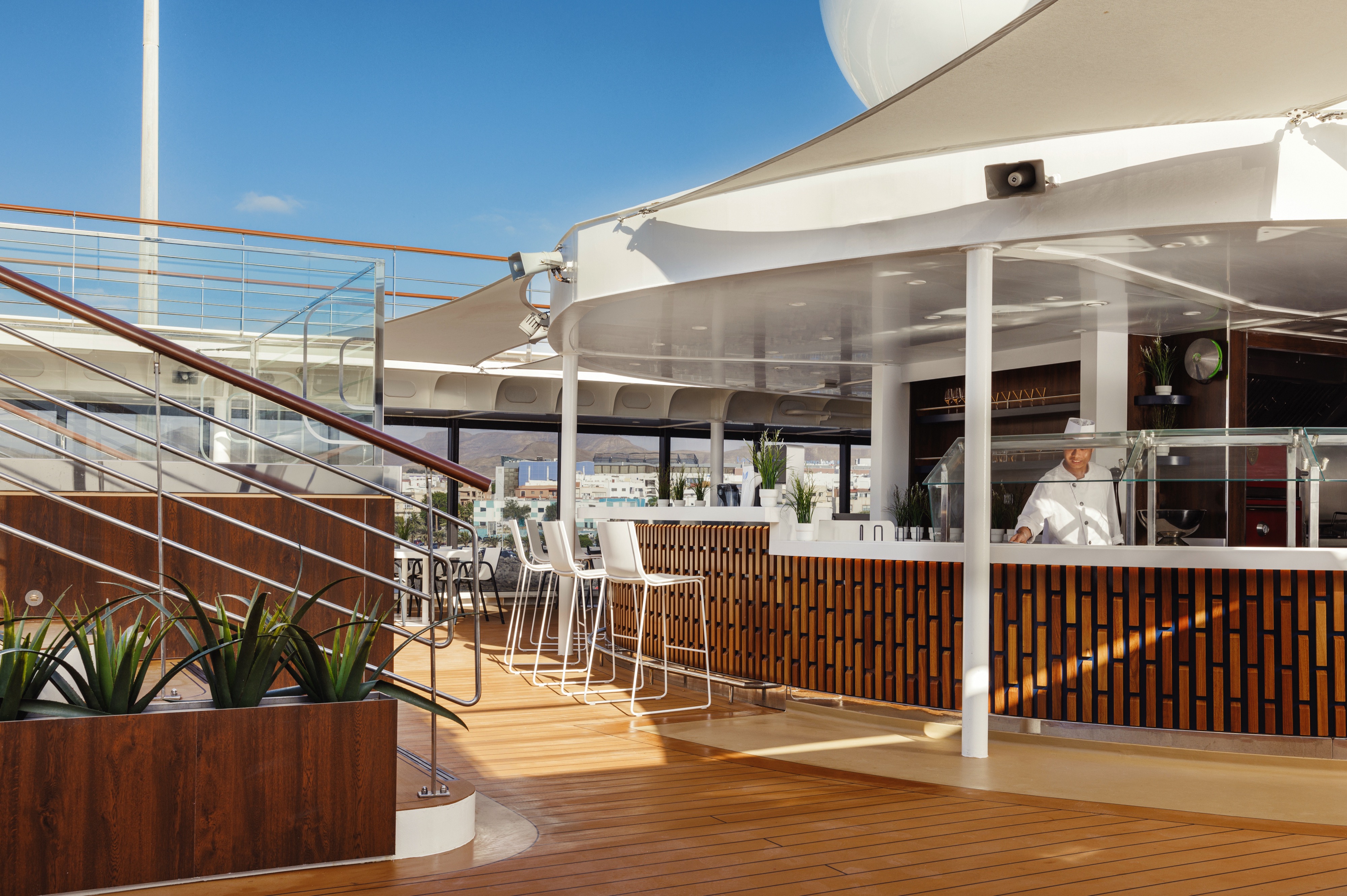 By day, 7AFT Grill serves a casual poolside lunch of tasty burgers, salads, flat breads and other classic favorites. By night, it transforms into an open-air chophouse for a Josper Grill dining experience. Savor the finest cuts of steak and fresh seafood, seared to perfection on a legendary Josper grill, the world leader in charcoal gastronomy. Exclusively on our Epicurean and Cultural Expeditions. Available when weather permits.