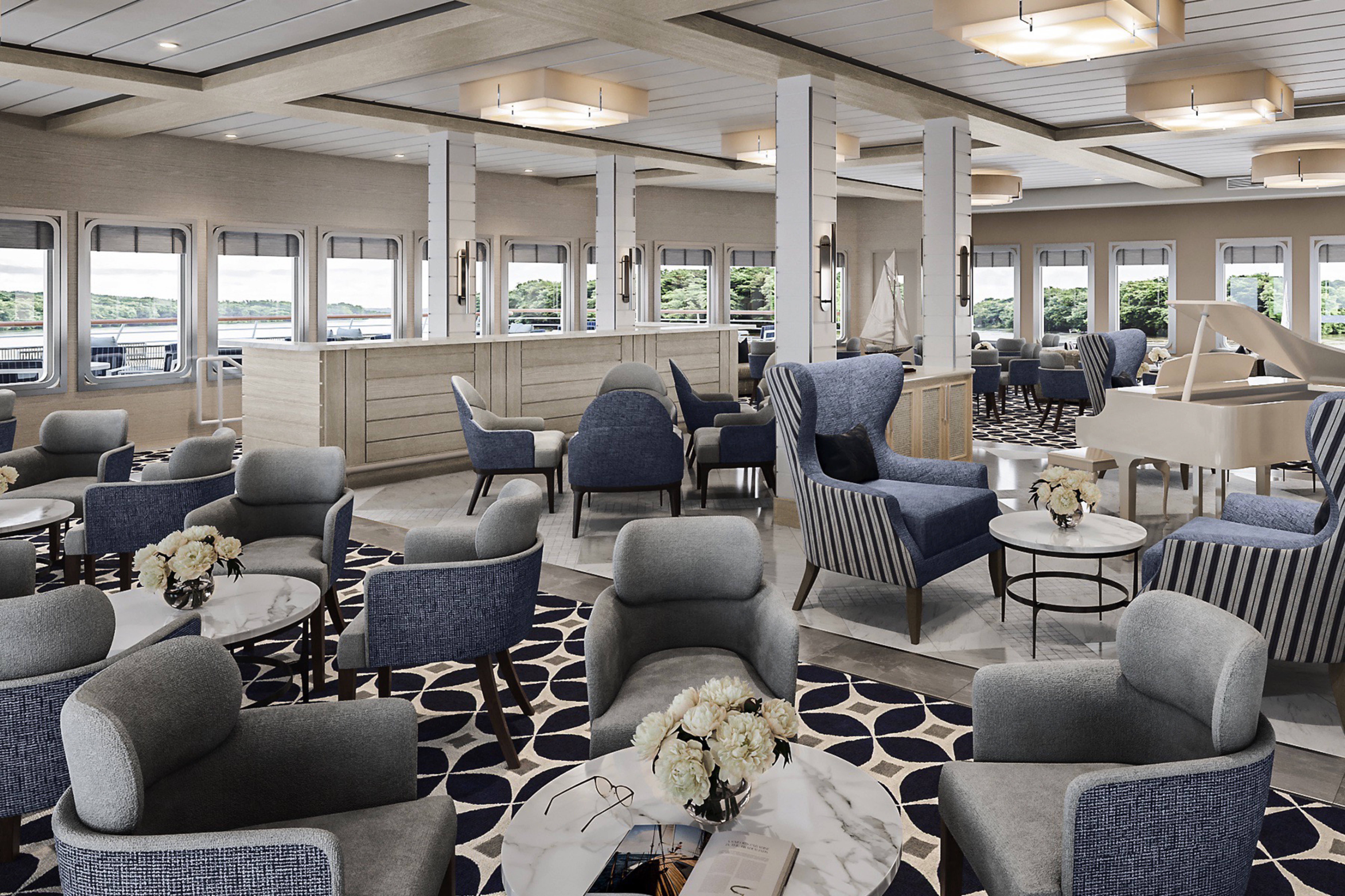 Studio DADO, the Miami based firm responsible for the interior designs of our newest modern riverboats, will be back to tailor an onboard atmosphere for American Liberty that evokes a sense of pride and appreciation for U.S. history. The choice of colour palettes, furnishings, and art work will reflect the culture of the New England, Chesapeake Bay, and the Southeast