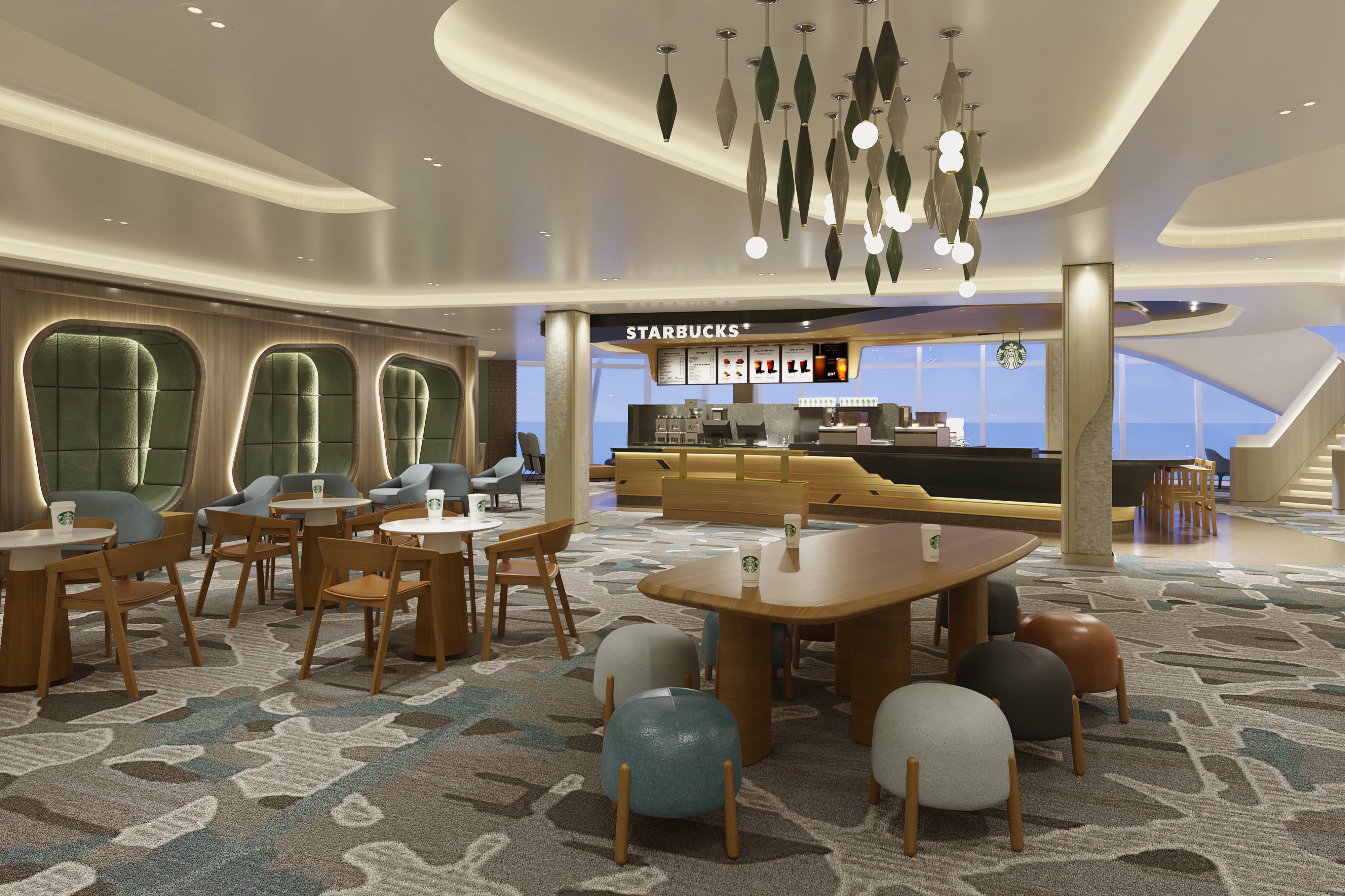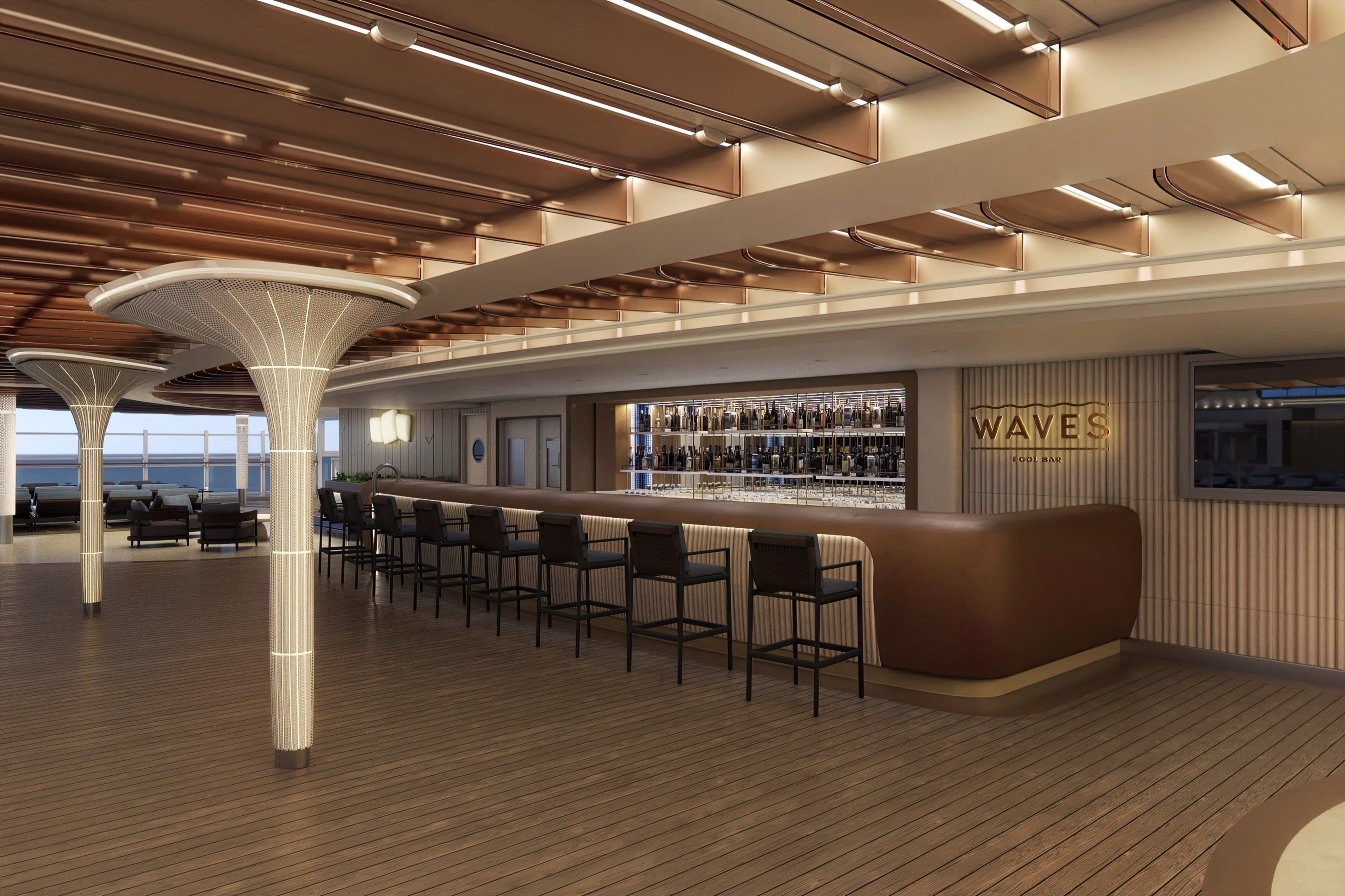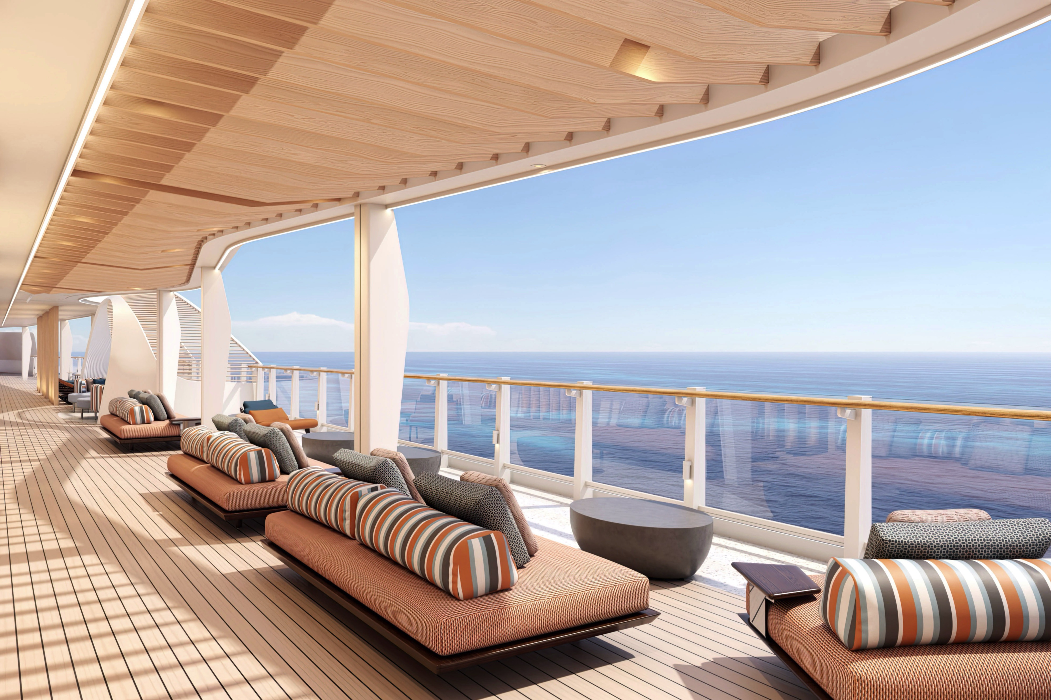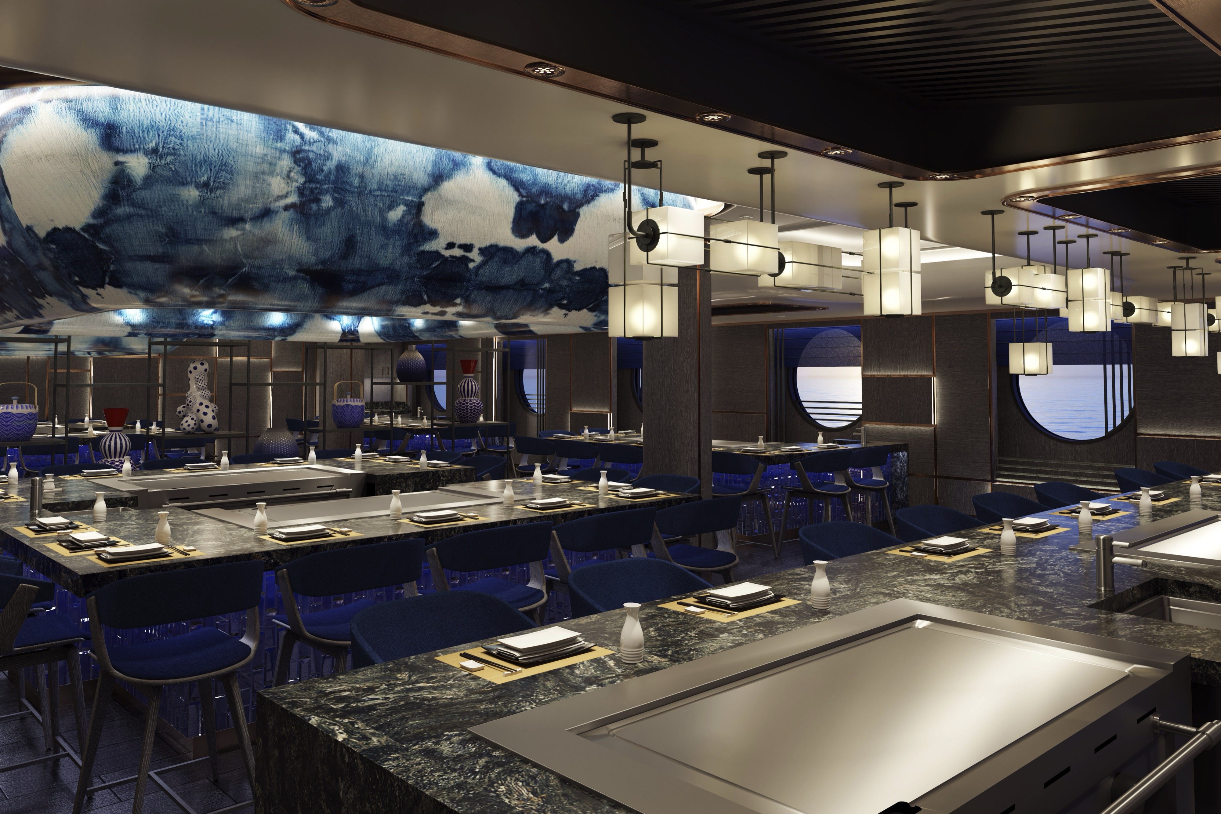 Designed to blend both indoor and outdoor experiences with stunning views of the ocean through grandiose floor-to-ceiling windows for panoramic views from the ship’s bow.
