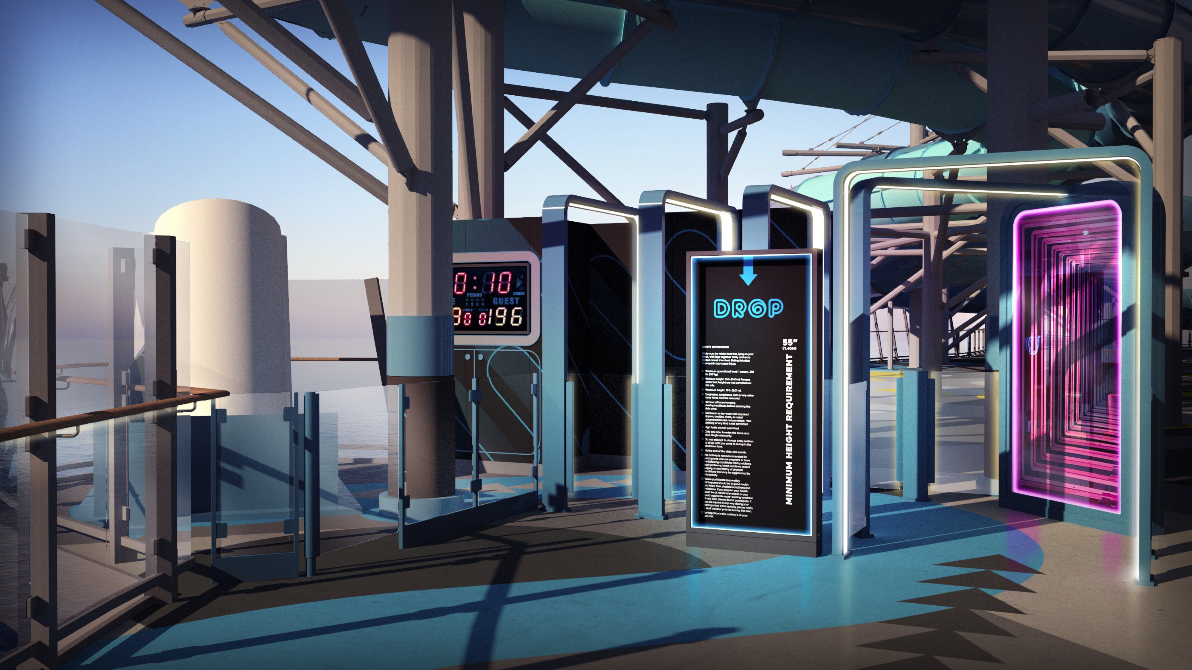 Let gravity take you spiraling 10-stories down the side of the ship for one truly jaw-dropping, heart-stopping, ride of your life.