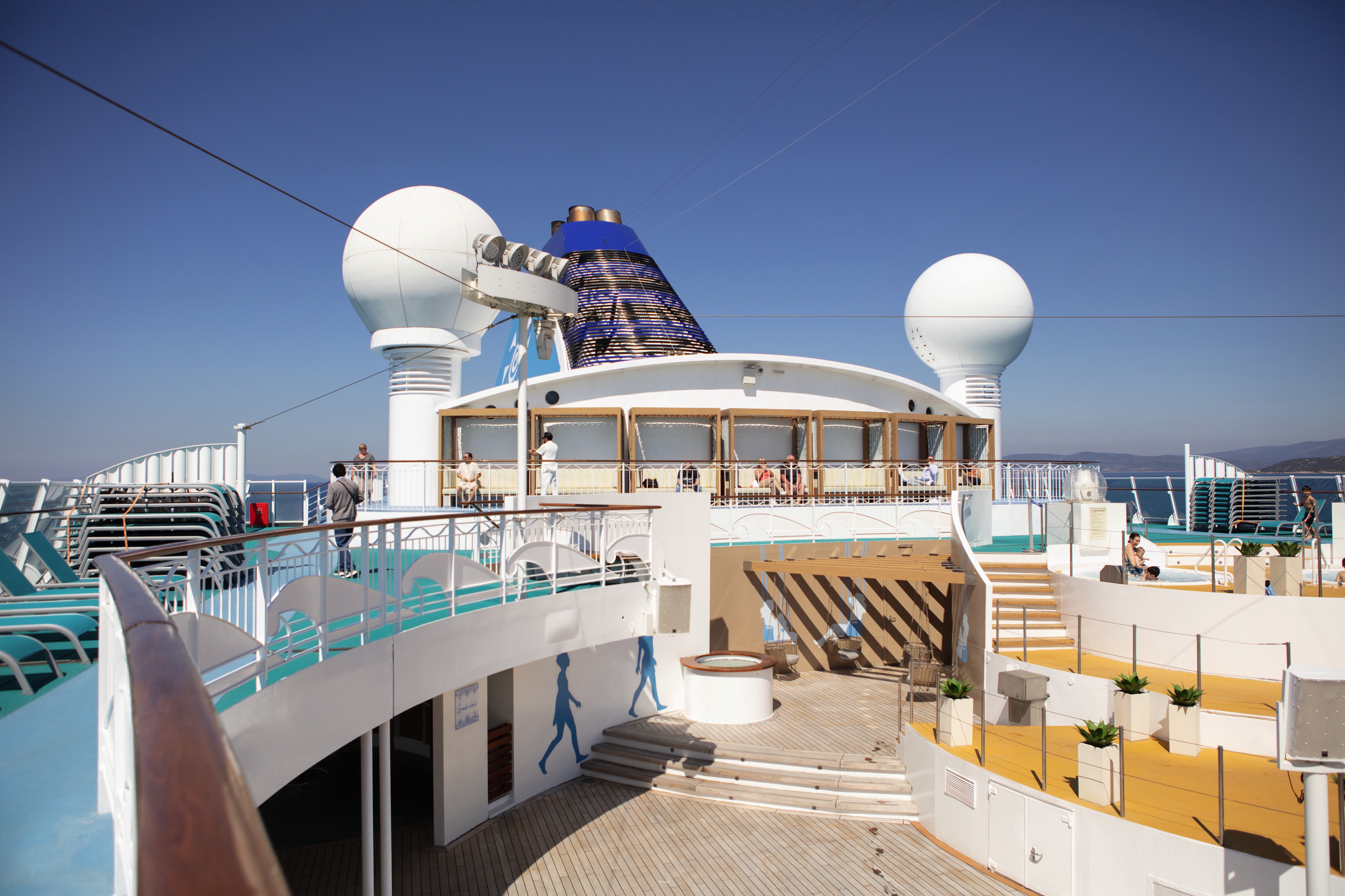 One of the very best places to chill out and relax on board, under the glorious Mediterranean sun with your favourite cocktail are the pool decks. Just bring a pool towel from your stateroom and come on up.