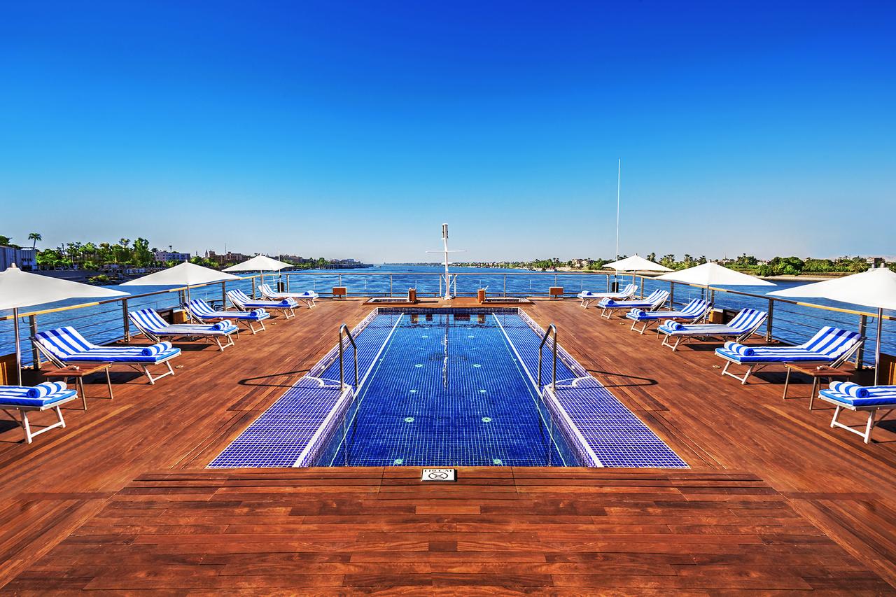 Enjoy a swim in the temperature controlled pool or relax with a cool drink and a snack in a lounge chair as surrounding views of the Nile pass you by at every moment